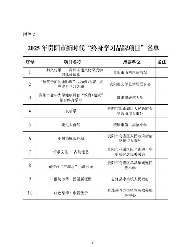 贵阳市2025 年新时代 “终身学习品牌项目”推介名单