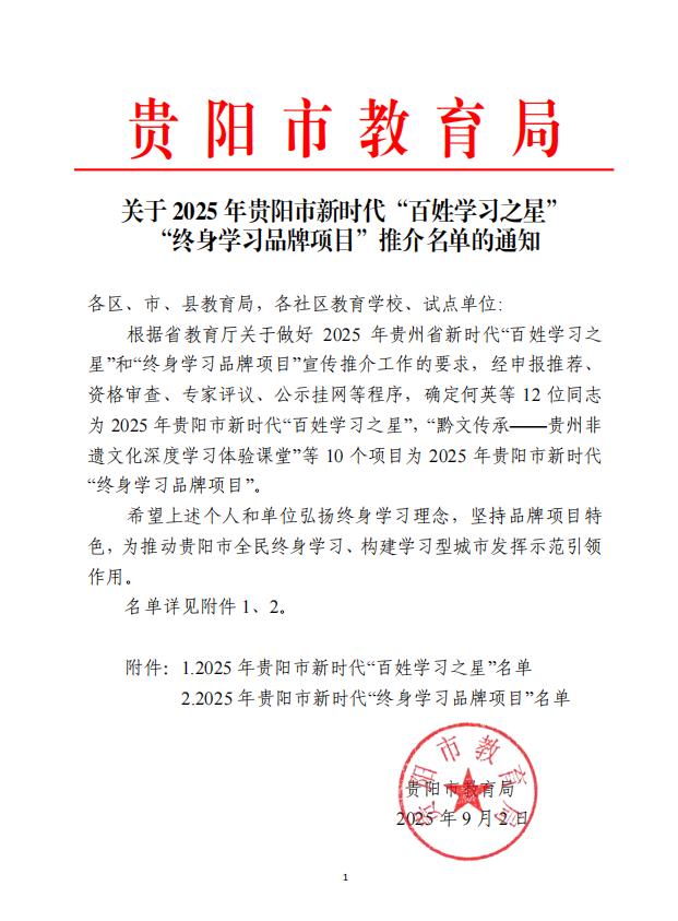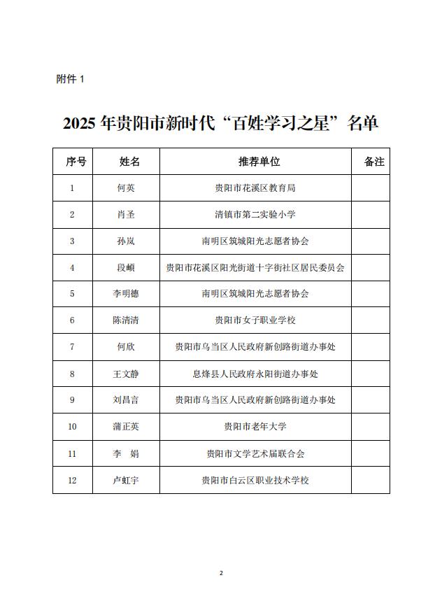 贵阳市2025 年新时代“百姓学习之星”推介名单