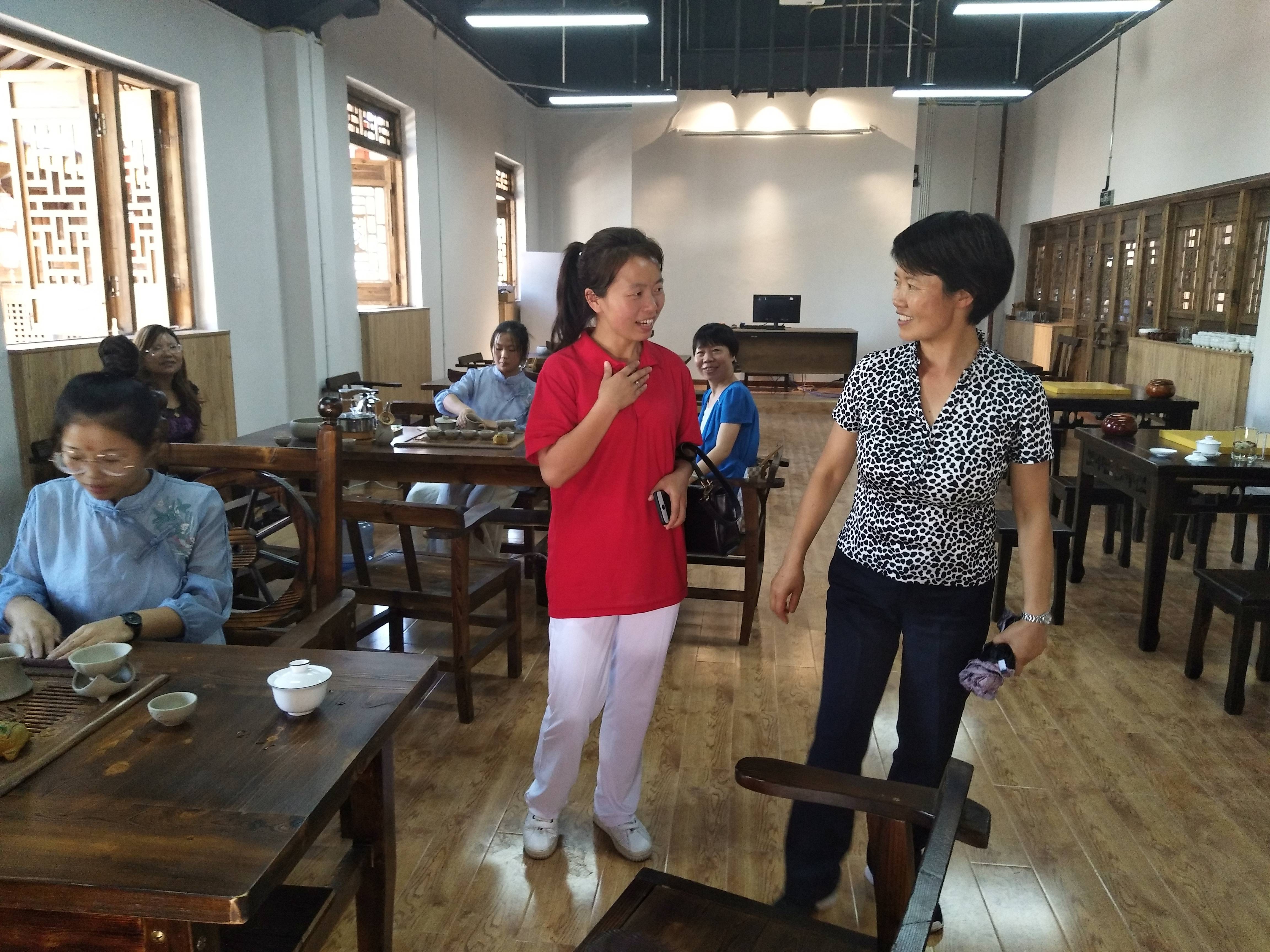 (图为县政协副主席冯于桥与陈静老师交流)