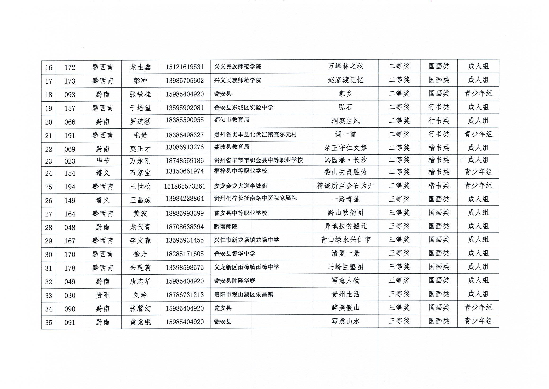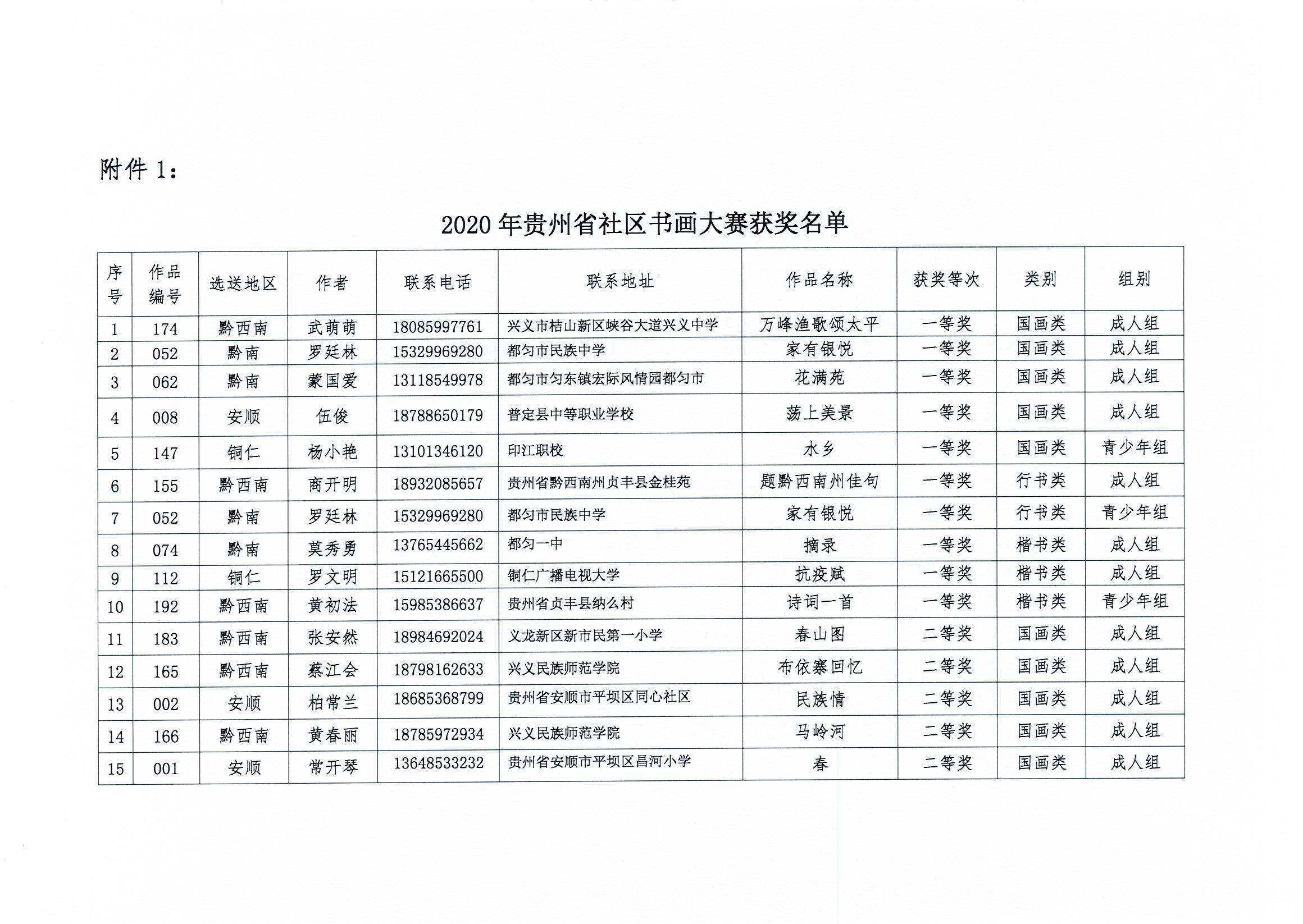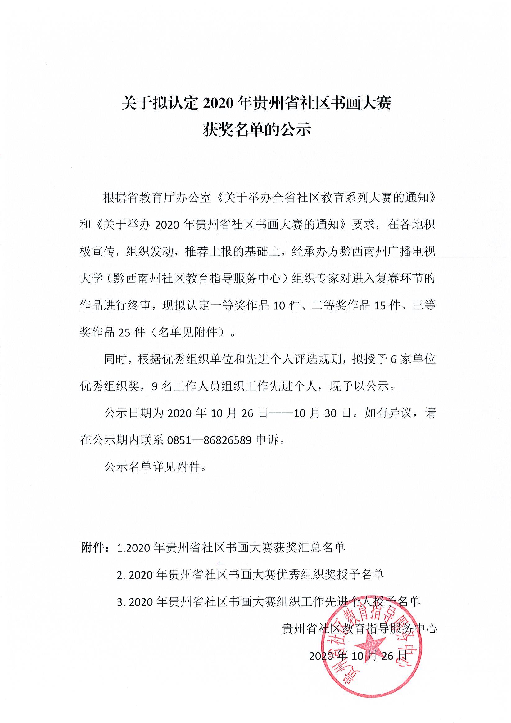 关于拟认定2020年贵州省社区书画大赛获奖名单的公示