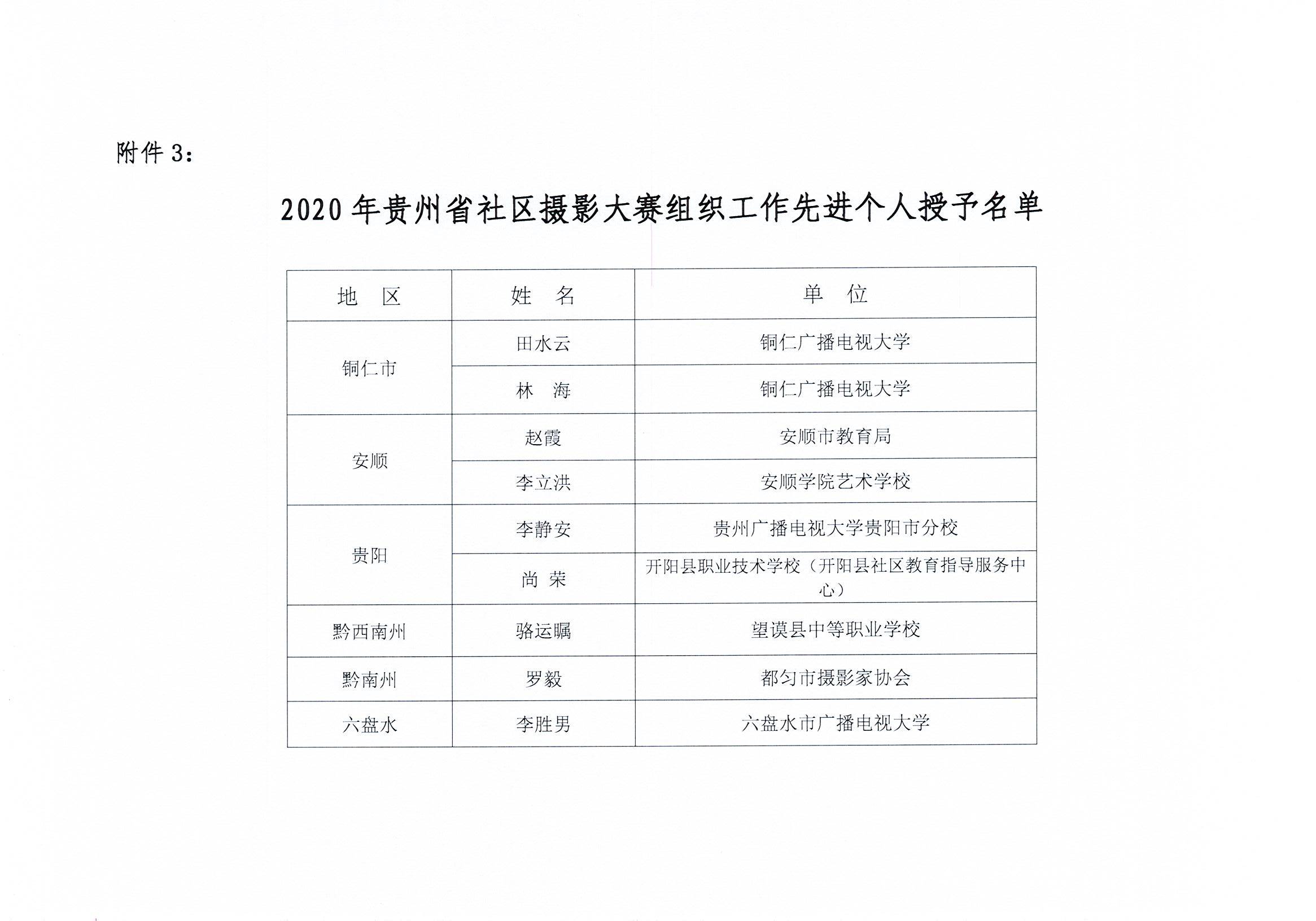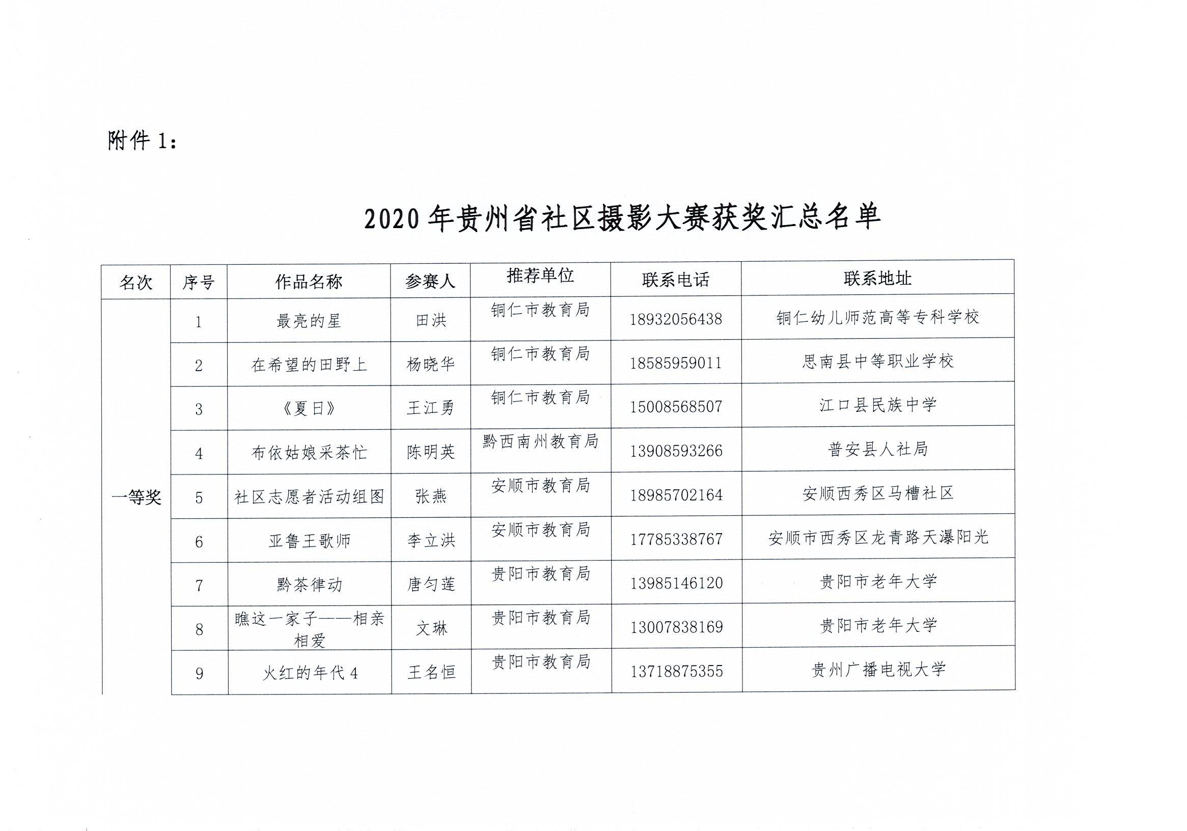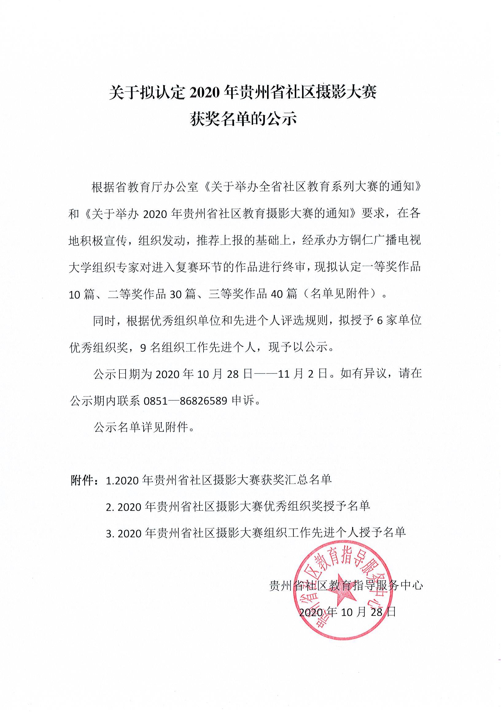 关于拟认定2020年贵州省社区摄影大赛获奖名单的公示