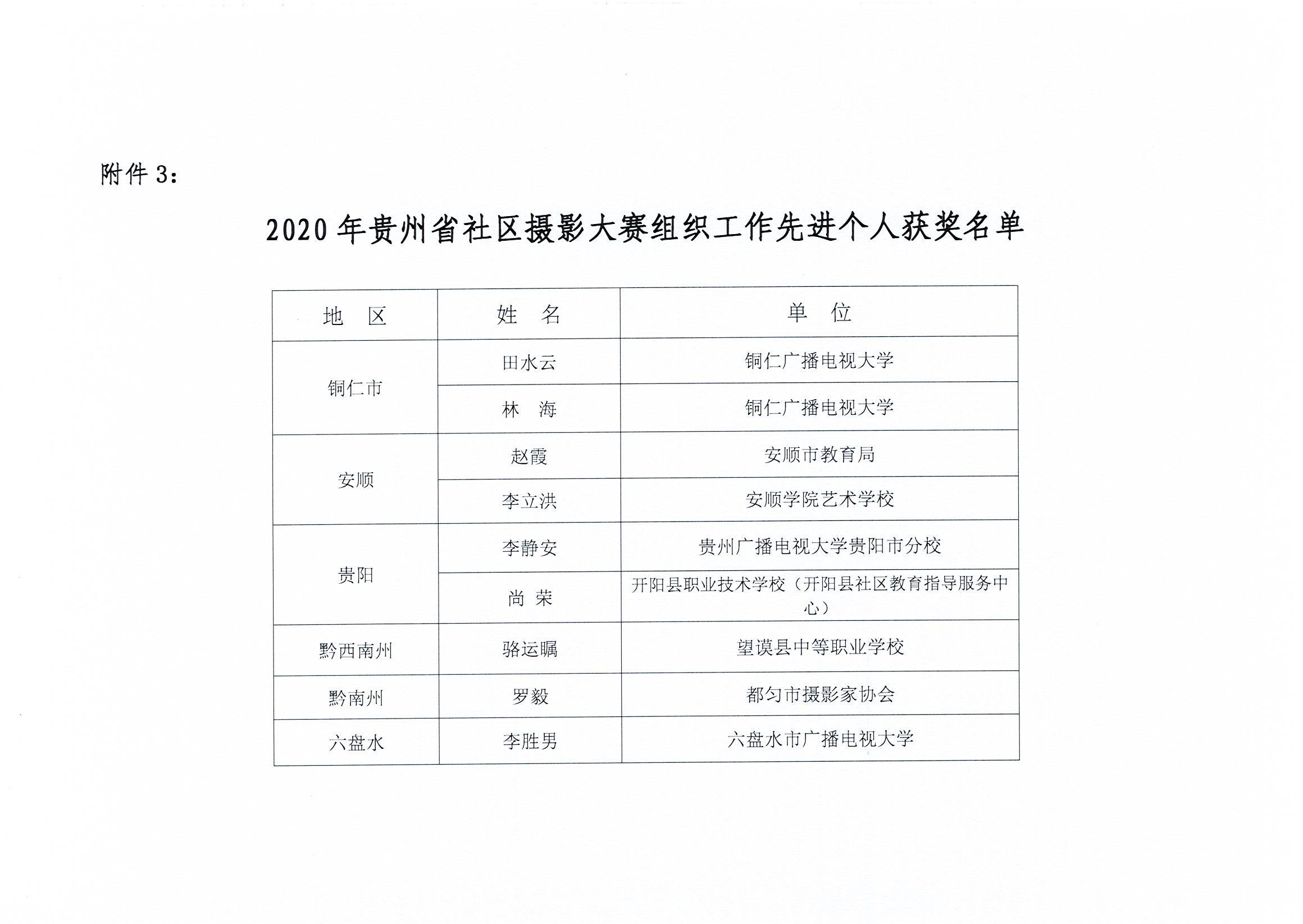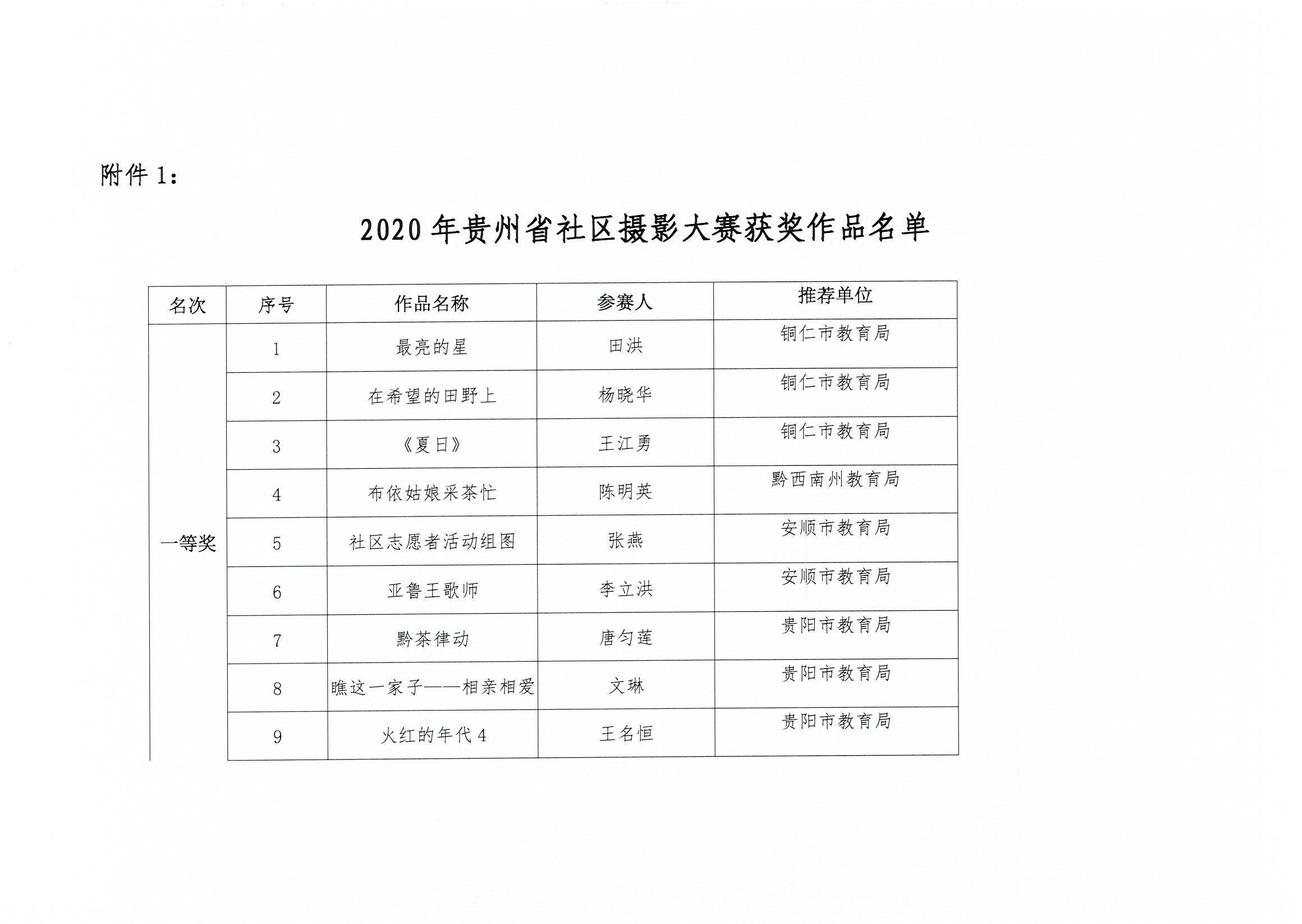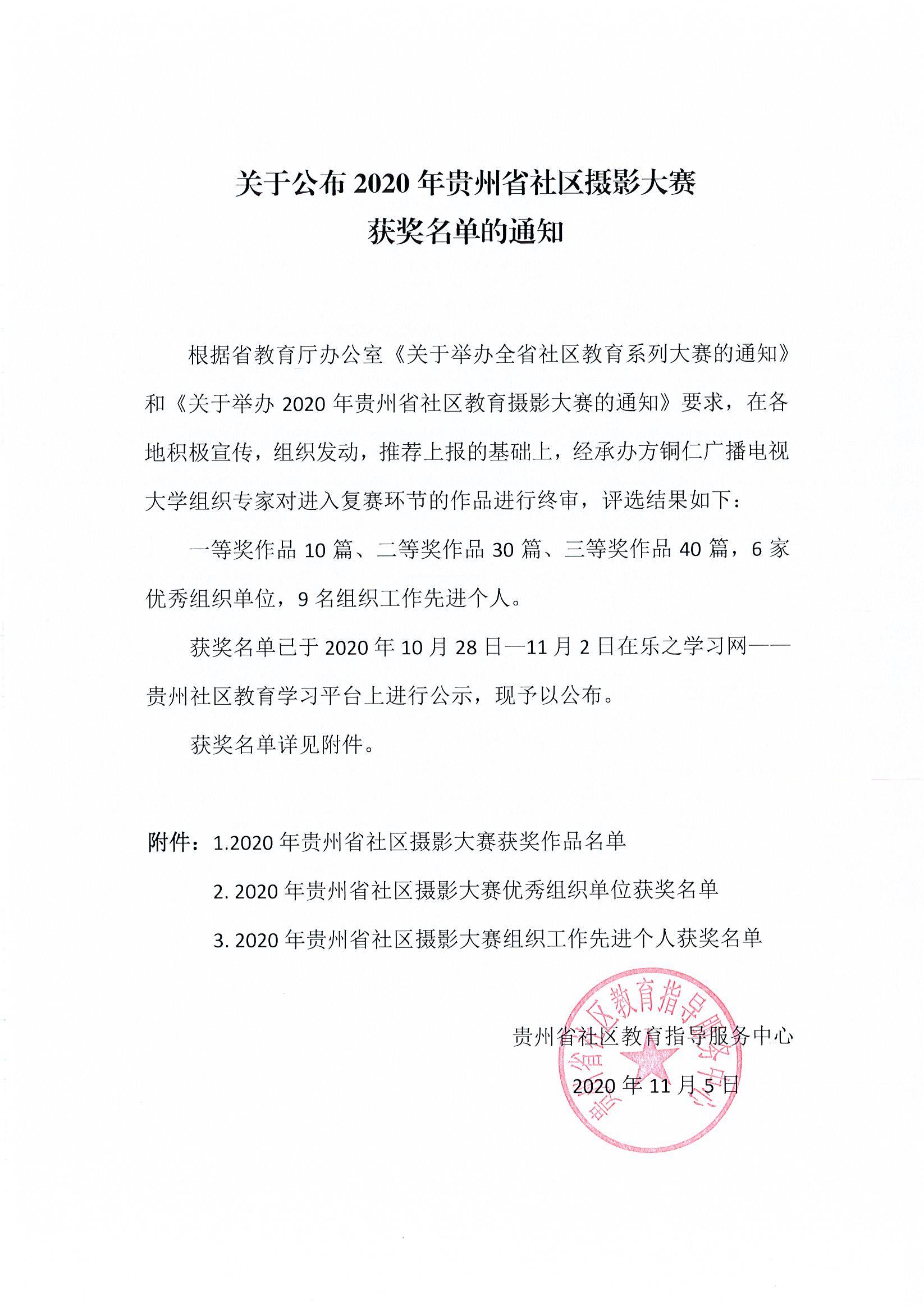 关于公布2020年贵州省社区摄影大赛 获奖名单的通知