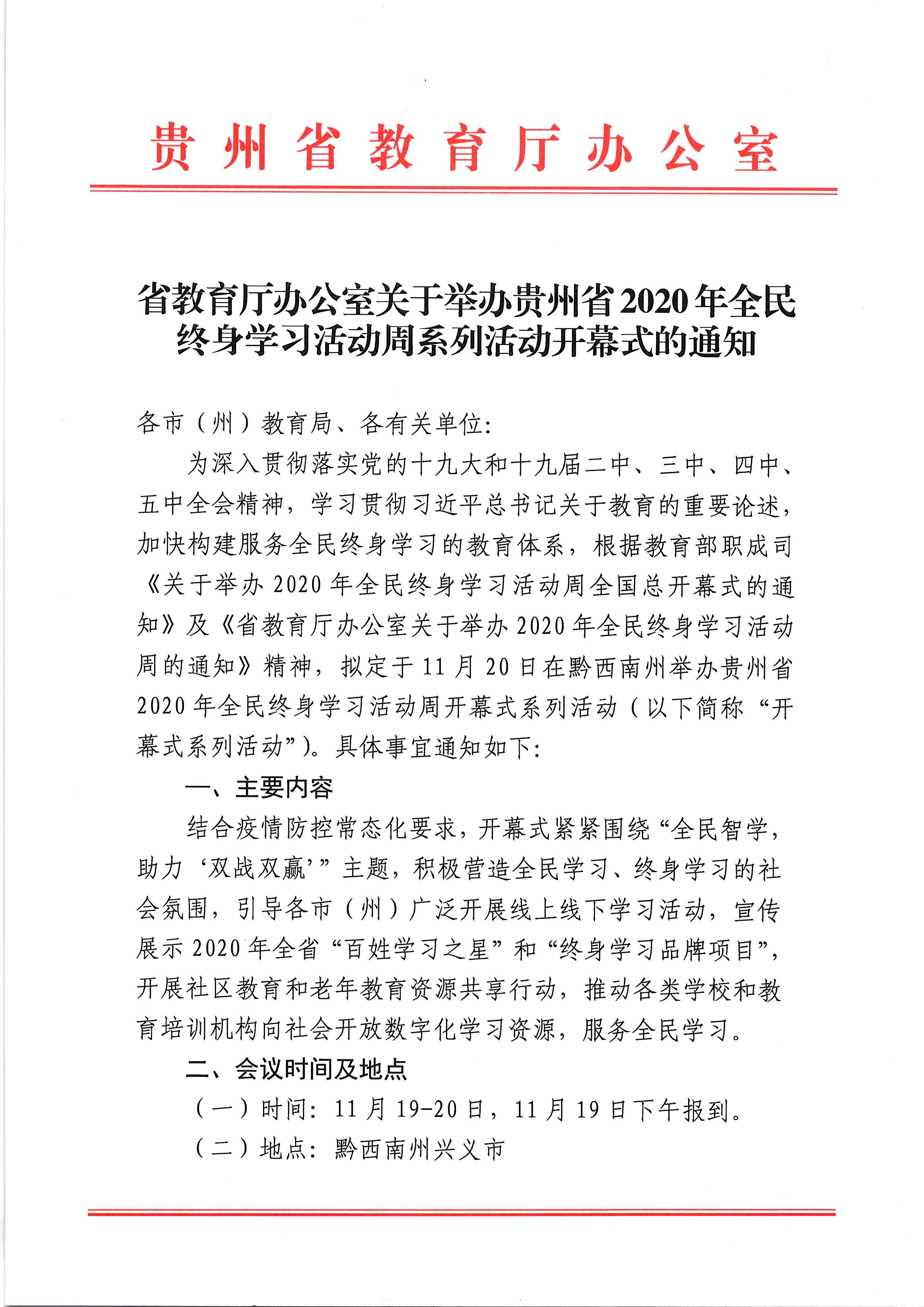 贵州省2020年全民终身学习活动周系列活动开幕式