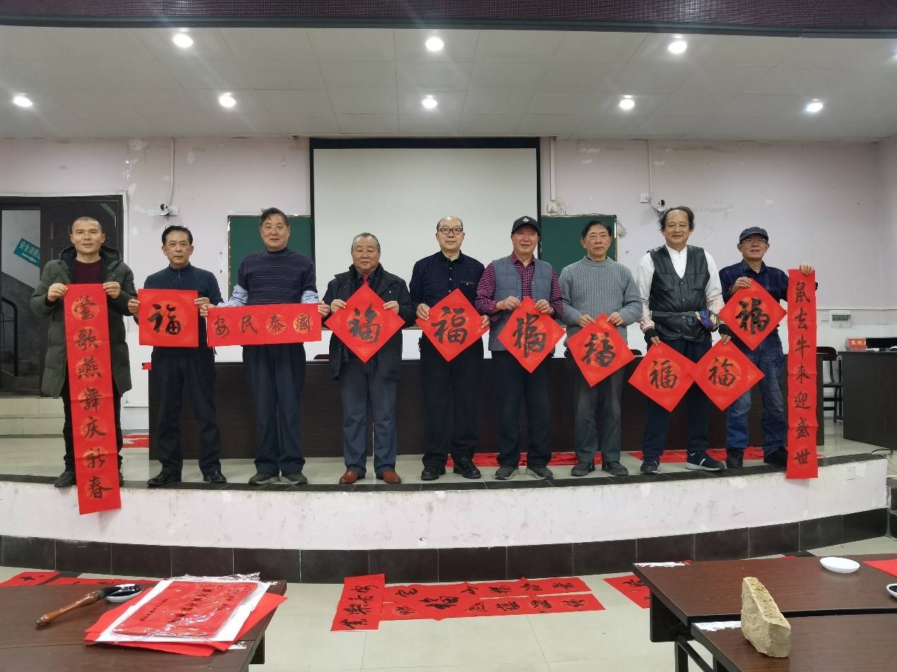 今年,结合疫情防控规定,我校提前组织社区教育书画活动室袁泽达等八位老师于1月30日在学校117教室创作了歌颂祖国、感谢党恩、祝福春节的大红春联,为群众营造祥和的节日氛围。