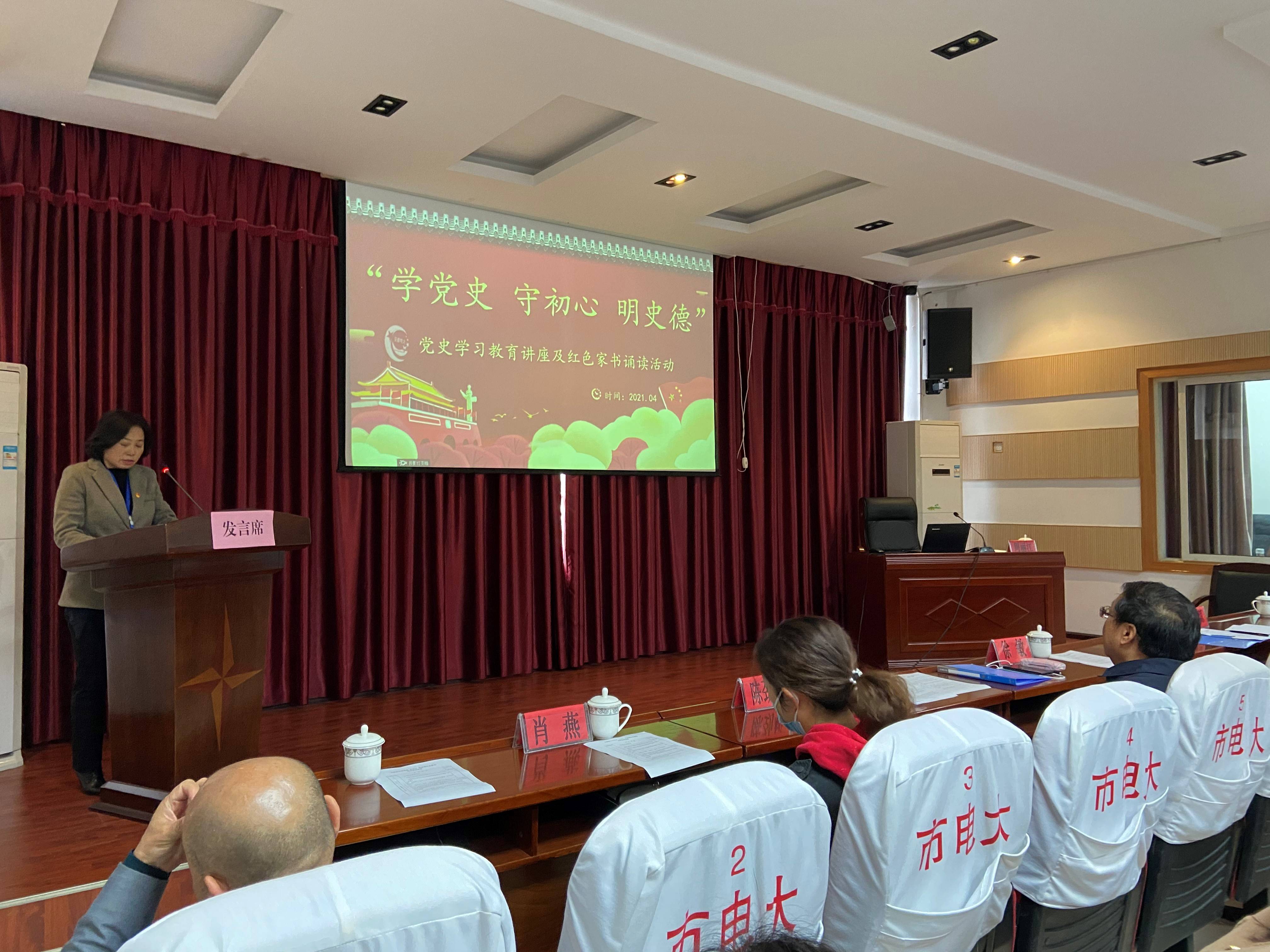 为认真贯彻落实党中央部署及习近平总书记指示批示精神,抓好党史学习教育,推动党史学习教育深入群众、深入基层、深入人心,4月9日上午安顺电大以“学党史 守初心 明史德 ” 为主题开展了党史学习教育讲座及红色家书诵读活动。出席活动的有安顺电大班子成员和全体教职工、安顺学苑社区领导干部和社区居民代表、安顺龙井小学教师代表以及安顺老年大学电大分校的学员代表。会议由安顺电大党总支委员、副校长陈劲松主持。