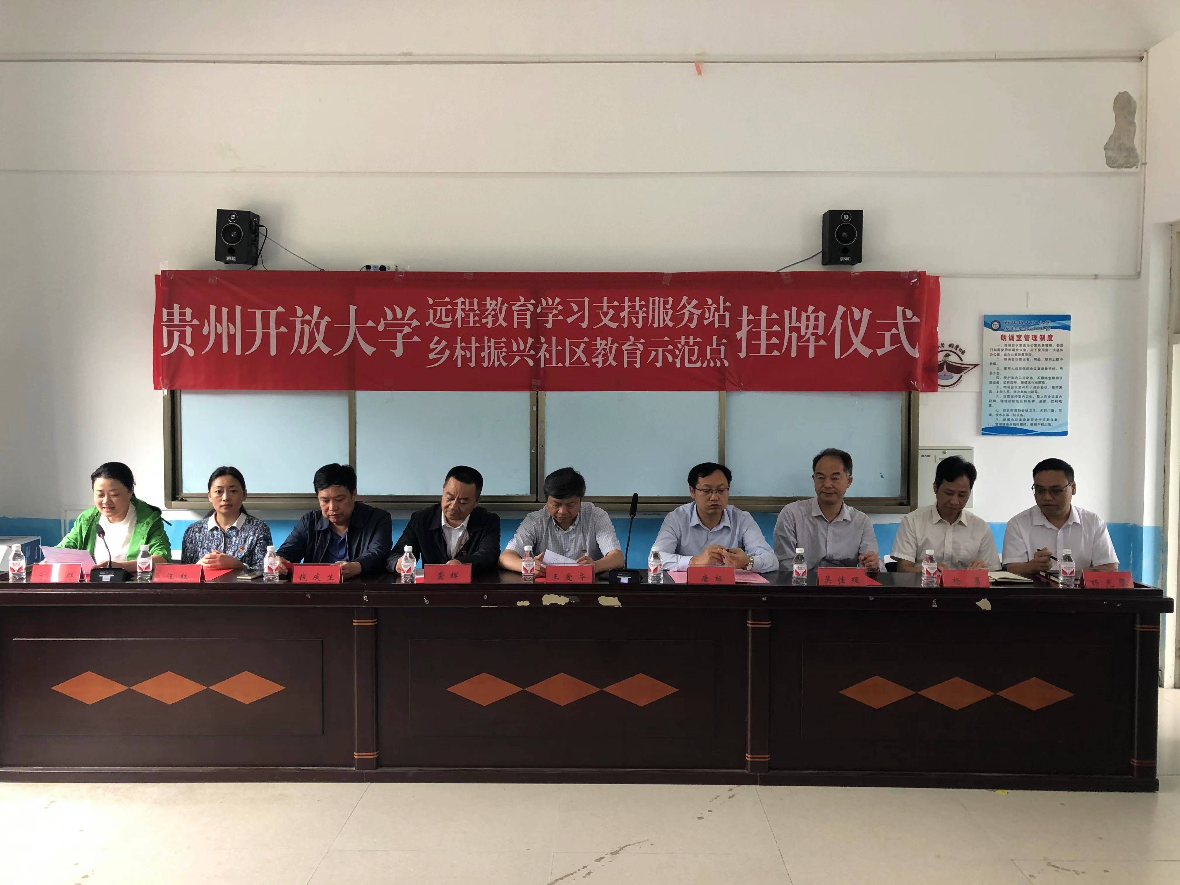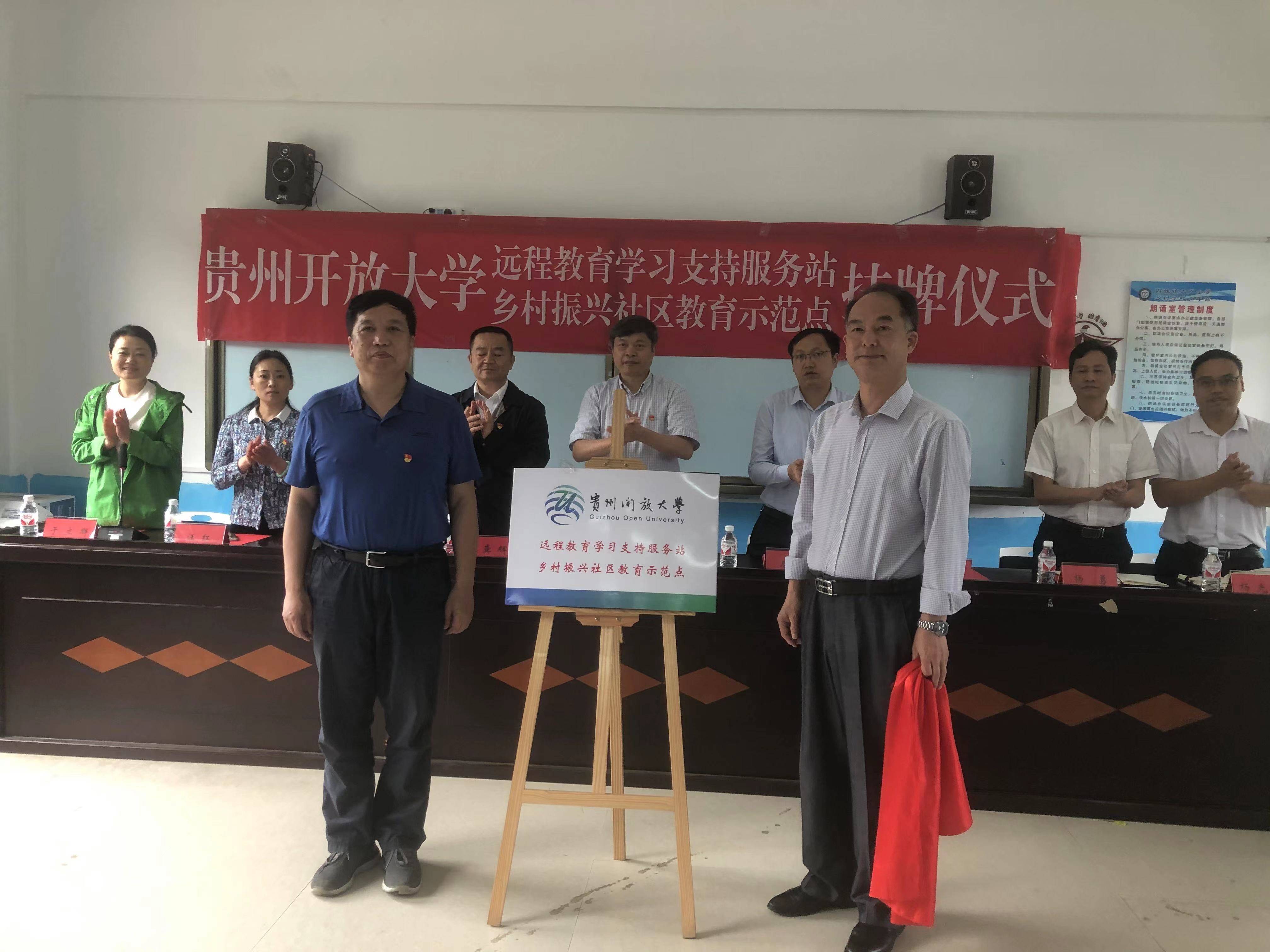 为深入贯彻习近平总书记视察贵州重要讲话精神,认真开展党史学习教育,推进乡村振兴工作,2021年6月4日,贵州开放大学(贵州职业技术学院)党委书记王爱华带队赴从江县丙妹镇大歹小学举行贵州开放大学远程教育学习支持服务站暨乡村振兴社区教育示范点揭牌仪式。 从江县委副书记、县人大常委会主任唐标对贵州开放大学对贵州开放大学远程教育学习支持服务站暨乡村振兴社区教育示范点的正式挂牌表示热烈的祝贺,也对贵州开放大学对从江县长期以来的发展所给予的关心与支持表示崇高的敬意。唐标主任提出,贵州开放大学远程教育学习支持服务站暨乡村振兴社区教育示范点的建立必将有力促进贵州开放大学与从江交流合作更加密切,也会成为服务从江及大歹村乡村振兴、提升群众文化的重要场所。这是从江教育事业发展的一件大好事,也是巩固从江拓展教育扶贫的一件大好事,更是助力从江全面推进乡村振兴的一件大好事。