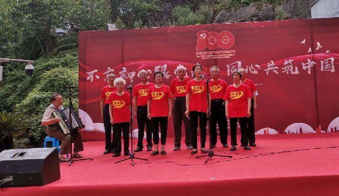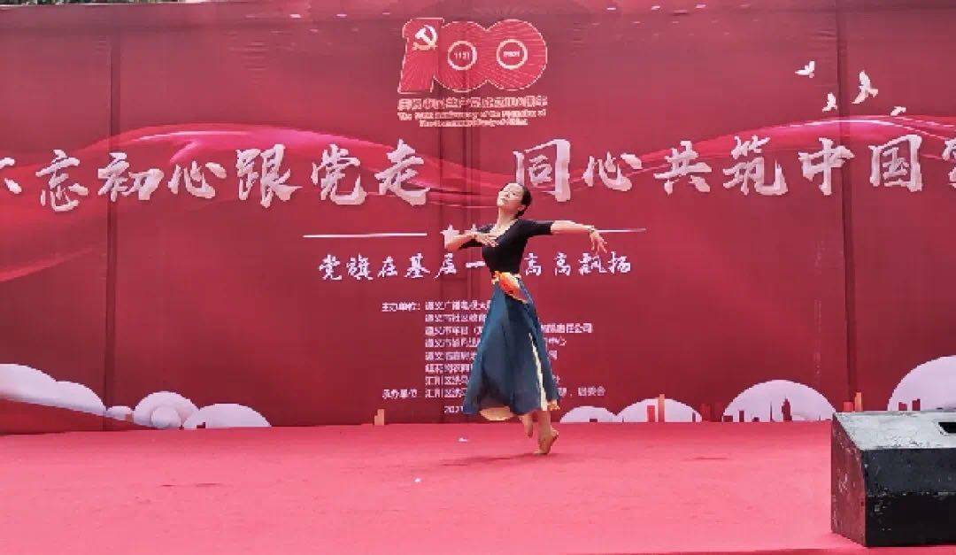 从历史,到今天,100年的光辉历程和丰功伟绩以铁的事实论证了一个铁的定律,没有共产党就没有新中国。遵义社区大学退休党员演唱的歌曲《没有共产党就没有新中国》、《永远跟党走》拉开了汇演的序幕,教师薛莉娜的独舞《英雄赞歌》看得大家心潮澎湃,音诗画作品《党旗颂》激励我们意气风发。