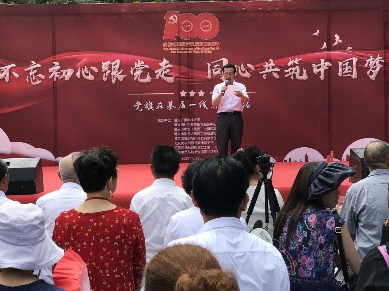 庆祝活动中,我校党委书记朱新宇向添阳社区广大党员送上了节日问候,对受表彰的优秀共产党员道以热烈的祝贺,并作了热情洋溢的讲话:100年的峥嵘岁月转瞬即过,共产党人的初心却始终未改。新时代呼唤新作为,新征程谱写新篇章,作为红城儿女,值党的百年华诞之际,我们更加以实际行动开展好党史学习教育,传承好红色基因,讲好遵义故事,以此激励担当作为,开创遵义美好未来。我校也将与添阳社区一起携手,打造更加优质的社区教育、社区服务,推动社区各项工作高质量发展。最后,让我们衷心的祝愿伟大的中国共产党生机无限,永葆青春,祝愿党的事业蒸蒸日上,兴旺发达!
