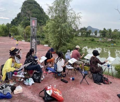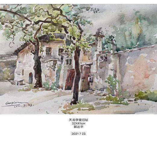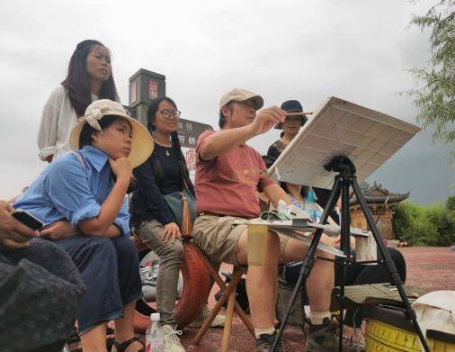 第一天郭老师给学员们作了水彩画写生讲座,讲解水彩画理论,漫谈写生技法、介绍怀斯、透纳等风景画大师艺术风格。仿佛把学员们带进了另一个色彩斑澜的世界,接下来的四天里郭老师带领学员们深入乡村寻风景、找美图、乐在其中。一路上郭老师早年师大教过的老学生、还有学生的学生们,场面其乐融融。五天学习中,每到一处地方,郭老师都要亲自示范,并现场教授了学员绘画技巧,指导学员进行了现场绘画,从理论到实际全方位进行了讲解。大家每天都是早出晚归日晒雨淋,然而郭老师每一幅精彩的写生范画都是一次生动的教学课堂,每次的示范画,学员们都会把老师围得水泄不通,生怕错过了一丁点的学习机。