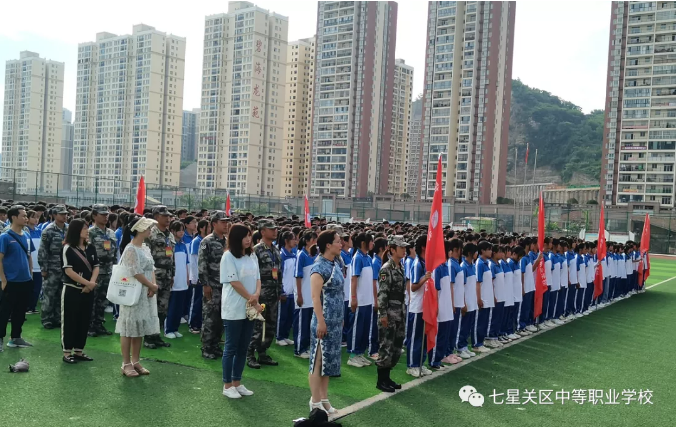 2021年7月30日上午8:30,毕节市七星关区中等职业学校(以下简称“区职校”)隆重举行了2021年新生军训结营仪式。七星关区人民武装部副部长严现平、七星关区人民武装部军训教官领队胡晓及区职校校级领导、中层干部及2021级全体班主任、1200多名新生参加了结营仪式,部分学生家长也到现场观看了军训汇报表演。