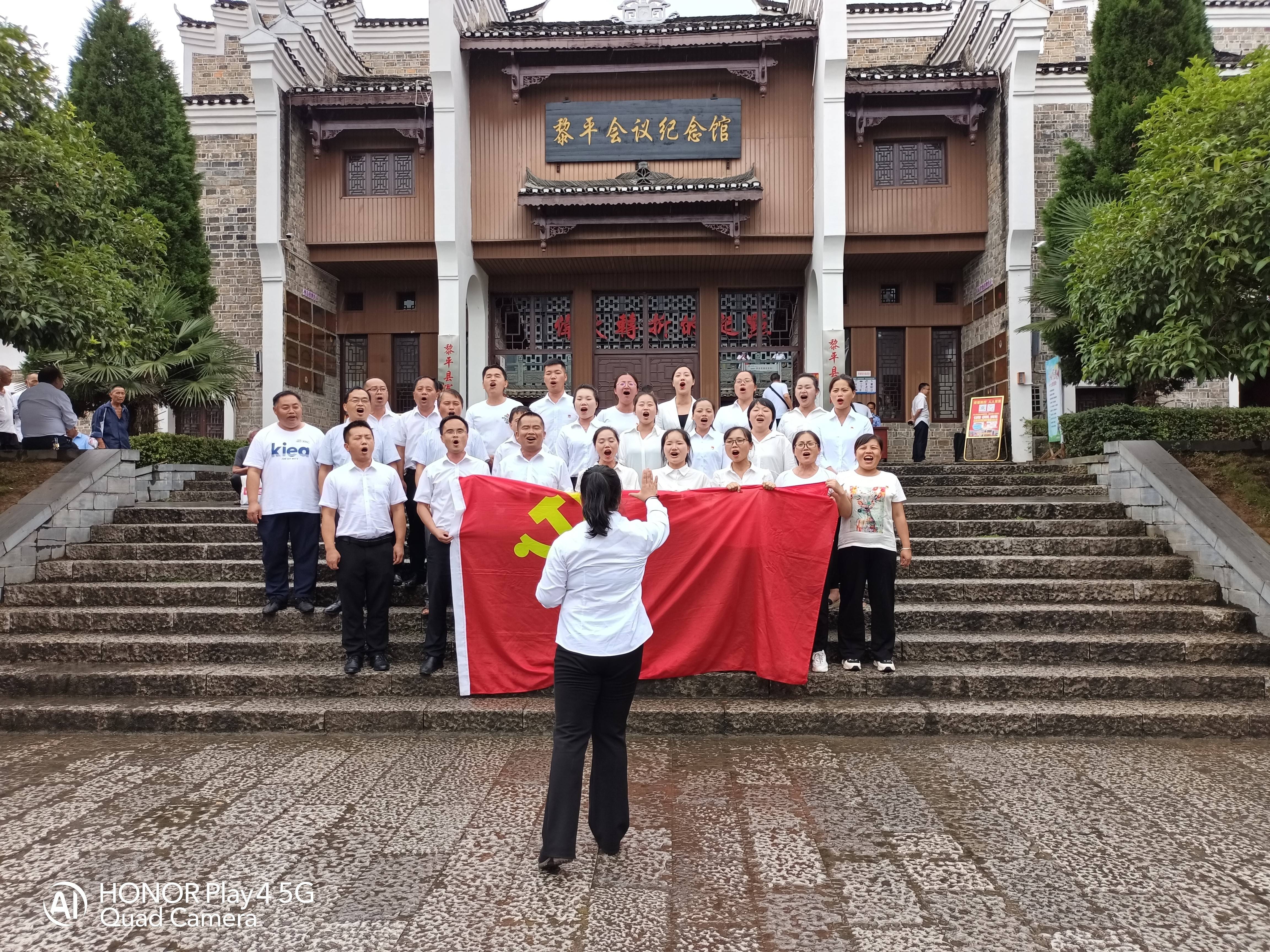 参观结束后并在馆内组织全体党员同志举起右手重温入党誓词。还在黎平会议纪念馆正大门的楼梯间上共同唱起“没有共产党就没有新中国”,歌曲响彻整个黎平会议纪念馆周边,赢得了前来参观会址干部群众热烈的掌声。