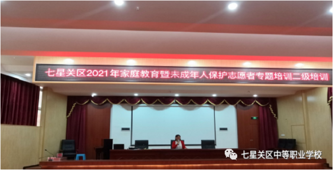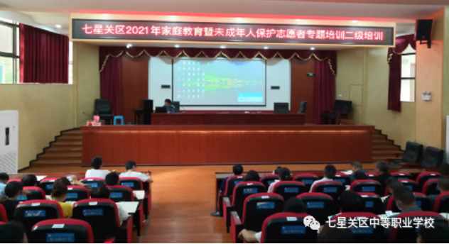为深入贯彻落实《中华人民共和国未成年人保护法》,提高思想认识、强化责任担当、提升业务能力,更好更深地推进家庭和学校未成年人保护工作,毕节市七星关区中等职业学校于2021年6月2日开展了“七星关区2021年家庭教育暨未成年人保护骨干志愿者”专题培训二级培训工作。