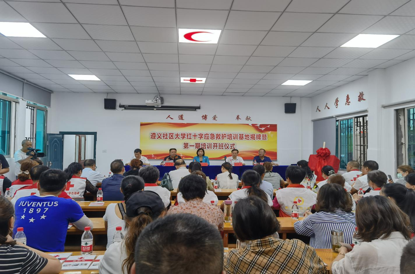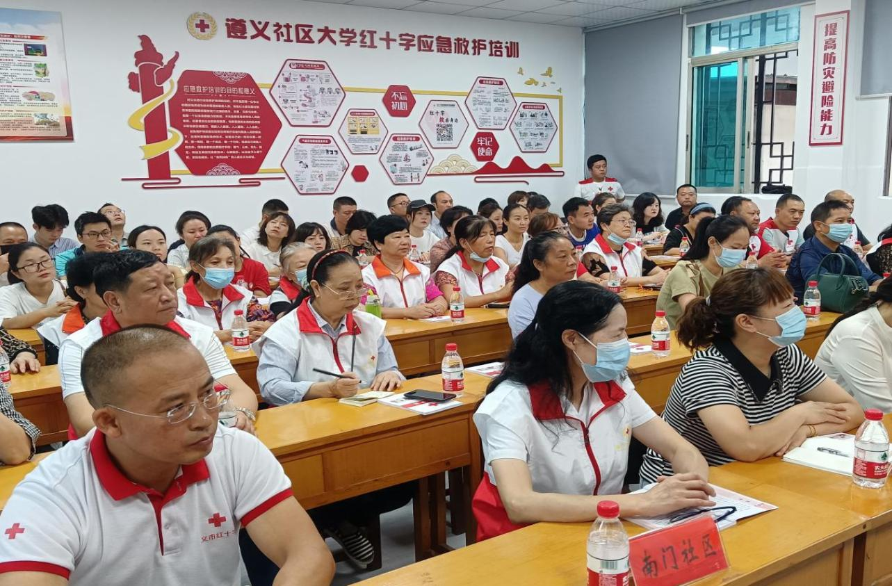 遵义市红十字会党组成员、秘书长张旗,遵义广播电视大学(社区大学)党委委员、副校长朱健,遵义广播电视大学(社区大学)全体教职员工、红花岗区红十字会、老城街道办事处、南门社区、添阳社区有关领导和社区群众代表、志愿者代表、学员代表、新闻媒体记者等60余人参加了揭牌仪式,并组织开展第一期红十字救护员培训。