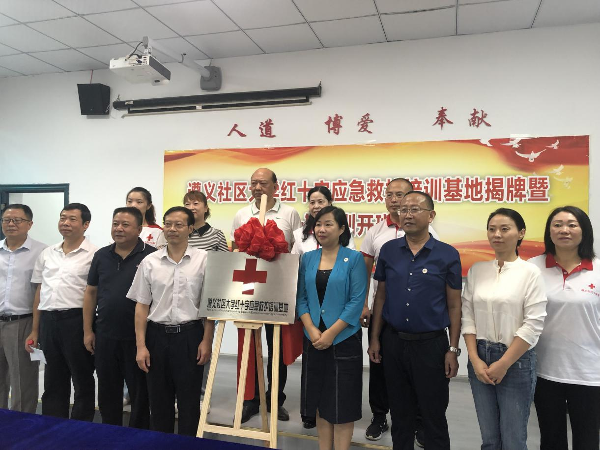 仪式上,遵义市红十字会党组书记、常务副会长杨怡,遵义广播电视大学(社区大学)党委书记朱新宇共同为遵义社区大学红十字应急救护培训基地揭牌。率先在全省开启了共建“社区大学、红十字应急救护培训基地”的先河,也打通了市民参与应急救护培训“最后一公里”。