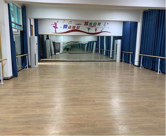 舞蹈室建筑面积为90平方米,可同时容纳50多名学生进行舞蹈训练。该室配备把杆两副,每副各长6米;3面墙面镜子,墙面布置, 满足了舞蹈教室的要求。舞蹈室将每周一到周五为社区群众免费开放,为我校内外大型活动的舞蹈排练提供场所,为提高社区群众的舞蹈素养,陶冶情操提供了优良的场所,为热爱舞蹈的社区群众提供了舞蹈场地。