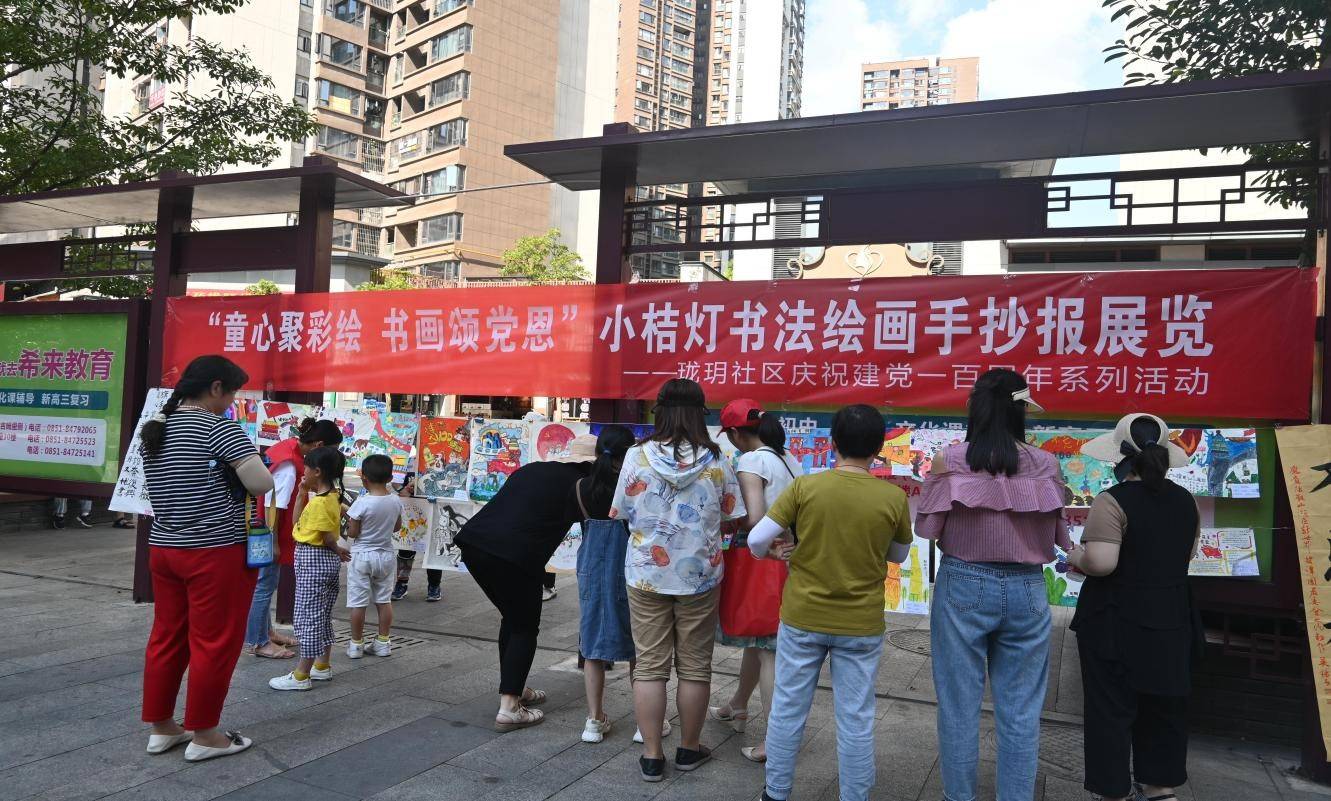 为庆祝中国共产党成立100周年,引导广大少年、儿童弘扬党的伟大精神,珍惜来之不易的幸福生活,争做新时代的好少年,金华园街道珑玥社区依托“小桔灯”亲子阅读书屋平台,以“童心聚彩绘 书画颂党恩”为主题举办书法、绘画、手抄报展览活动。