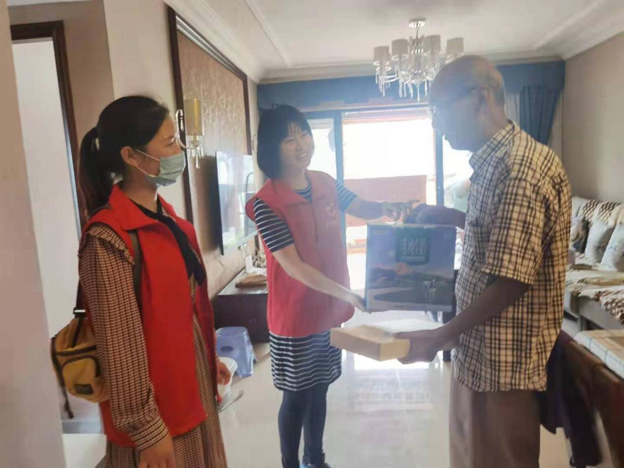 中秋佳节临近,为弘扬中华民族尊老、爱老、敬老、助老的传统美德,让辖区高龄、空巢、独居、失独老人感受到党和政府的关爱, 9月16日,金华园街道璟誉社区的工作人员带上中秋月饼、牛奶、蛋糕等慰问品,走进社区8名老人家中提前为他们送去节日问候。