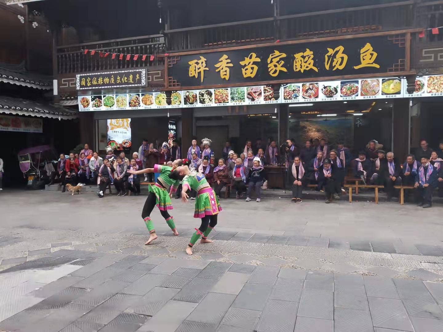 为创建一个爱老、敬老、养老、助老的节日氛围,雷山职校社区教育志愿者们与营上村的爷爷、奶奶们一起联欢,用苗族舞蹈、苗族芦笙歌舞的方式表达对爷爷、奶奶等老人的关心和爱护,让各位老人喜笑颜开,路过的游客也留步观看。