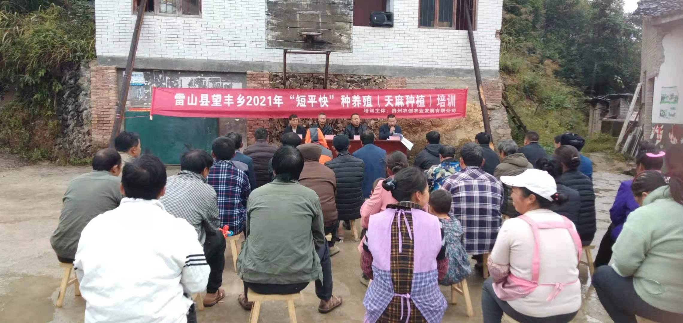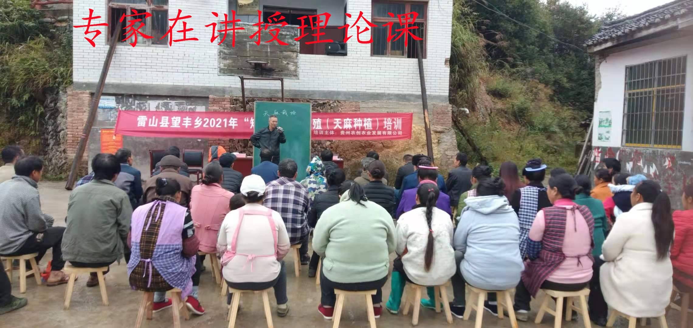 为实现雷山县第十四次党代会提出的雷山要做好:共建“一张网”、提升“一个寨”、开发“一座山”、打造“一品牌”、提升“一台戏” 、种好“一叶茶”、育好“一片麻”、建好“一座圆、”、打好“一张牌”、开发“一眼泉”、提升“一座城”的构想,2021年10月21日,为进一步巩固脱贫攻坚成果,助力乡村振兴,提升乌这村村民的天麻种植技能,在雷山县丰乡乌这村举办天麻种植技能培训,这次培训由贵州农创农业发展有限公司主办、雷山县社区教育中心协办。当天天空断断续续飞着毛毛细雨,但是丝毫没能阻挡得住村民们参加培训的积极性,参加此次培训的村民达60余人。培训特邀雷山县雷山县社区教育中心的天麻种植栽培管理技术专家马仁华老师等到场进行培训。