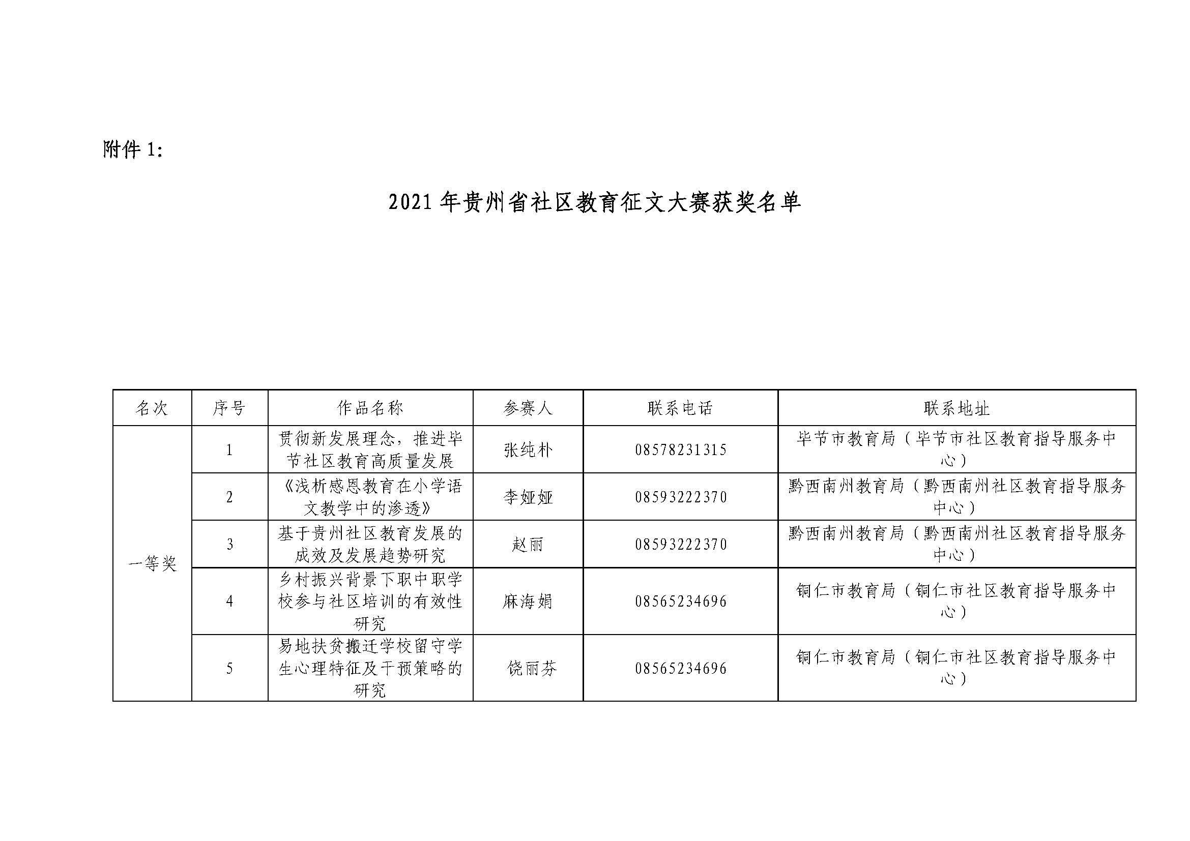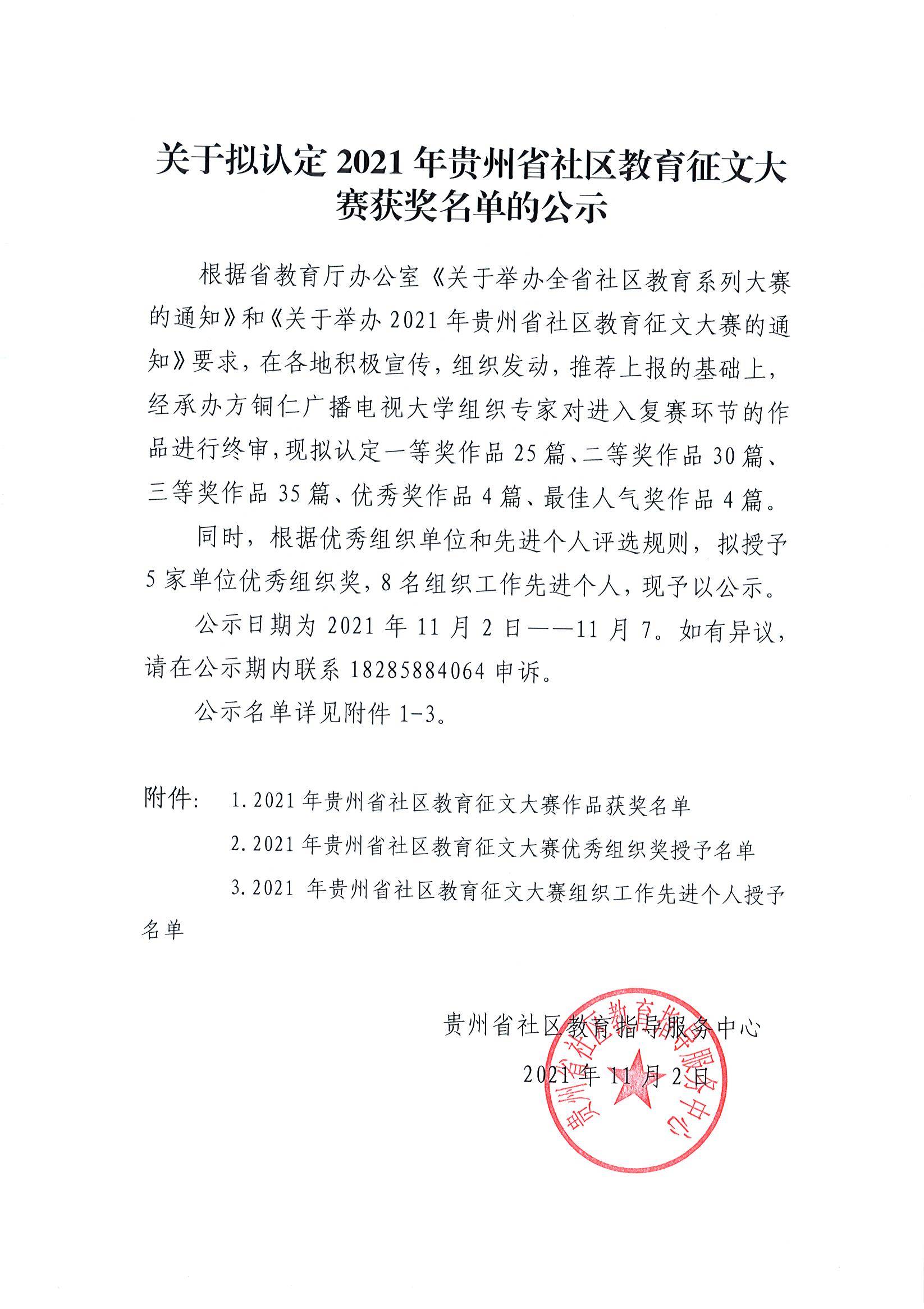 关于拟认定2021年贵州省社区教育征文大赛获奖名单的公示