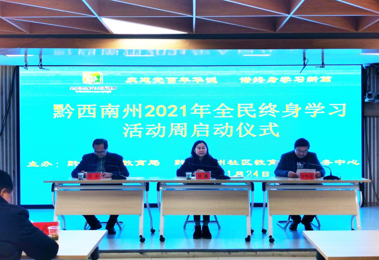 为深入贯彻落实党的十九大、十九届历次全会精神和习近平总书记关于教育的重要论述,以倡导终身学习、提高全民综合素质、建设学习型社会为目标,大力宣传“全民学习、终身学习”思想,提升全民的文化素养,推动实现“构建服务全民终身学习的教育体系”“建设学习型社会”“建成教育强国”等奋斗目标。根据省教育厅关于举办 2021 年全民终身学习活动周和新冠肺炎疫情防控有关要求,结合我州实际情况,2021年11月24日上午在黔西南州教育局举行了黔西南州2021年全民终身学习活动周启动仪式。