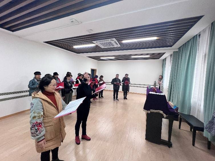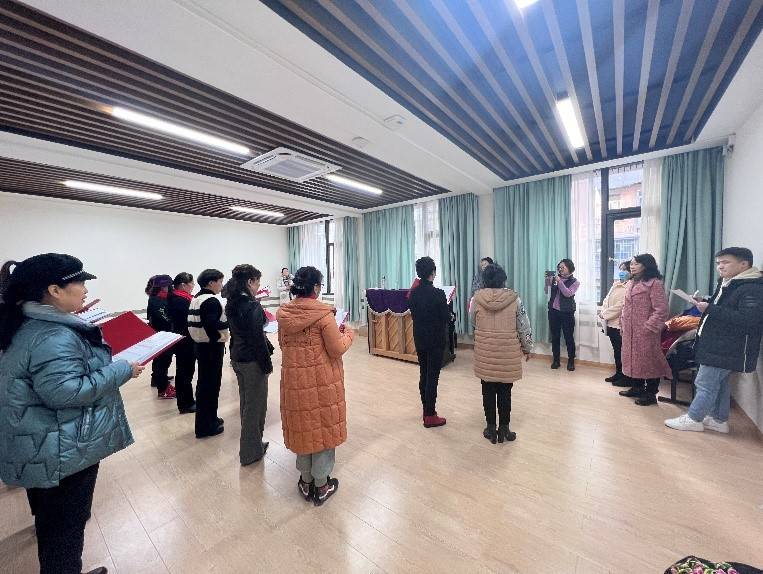 由贵州省社区教育指导服务中心副主任涂雪霏(主持工作)带领本部门教职工对节目进行审查,第一个节目是由2021普通话班朗诵的《中国的声音》。进入A218教室,映入眼帘的是站着整齐的老年学员,朗诵声音整齐明亮。