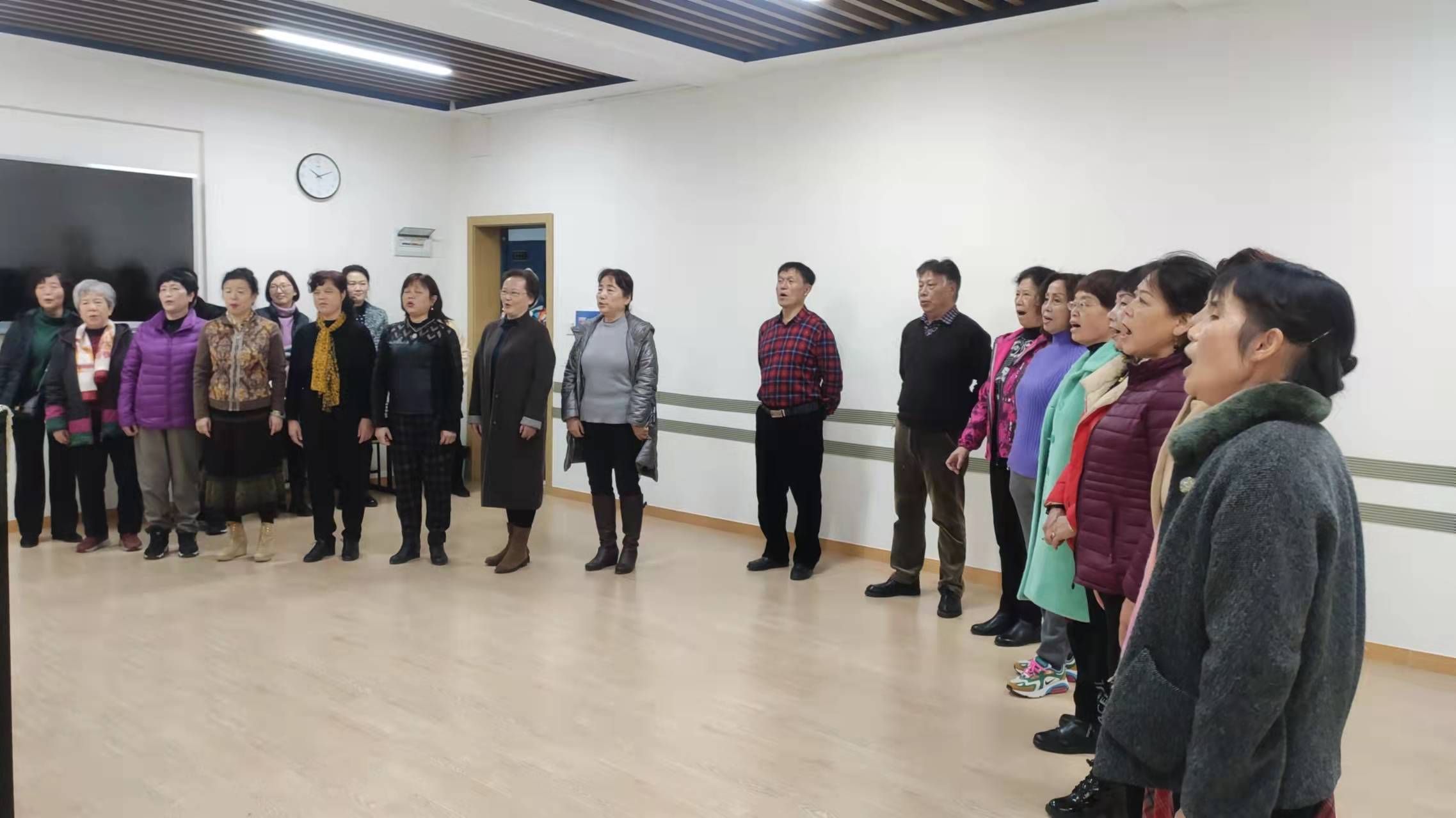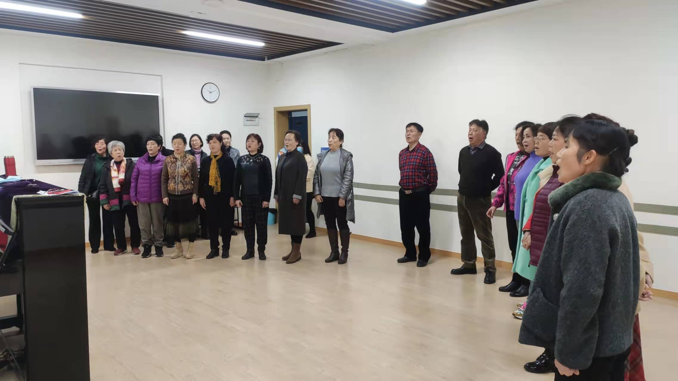 由贵州省社区教育指导服务中心副主任涂雪霏(主持工作)带领本部门教职工对节目进行审查,第三个节目是由2019声乐(1)班带来的歌曲《我的中国梦》。进入A218教室,映入眼帘的是站着整齐的老年学员,声音整齐明亮。