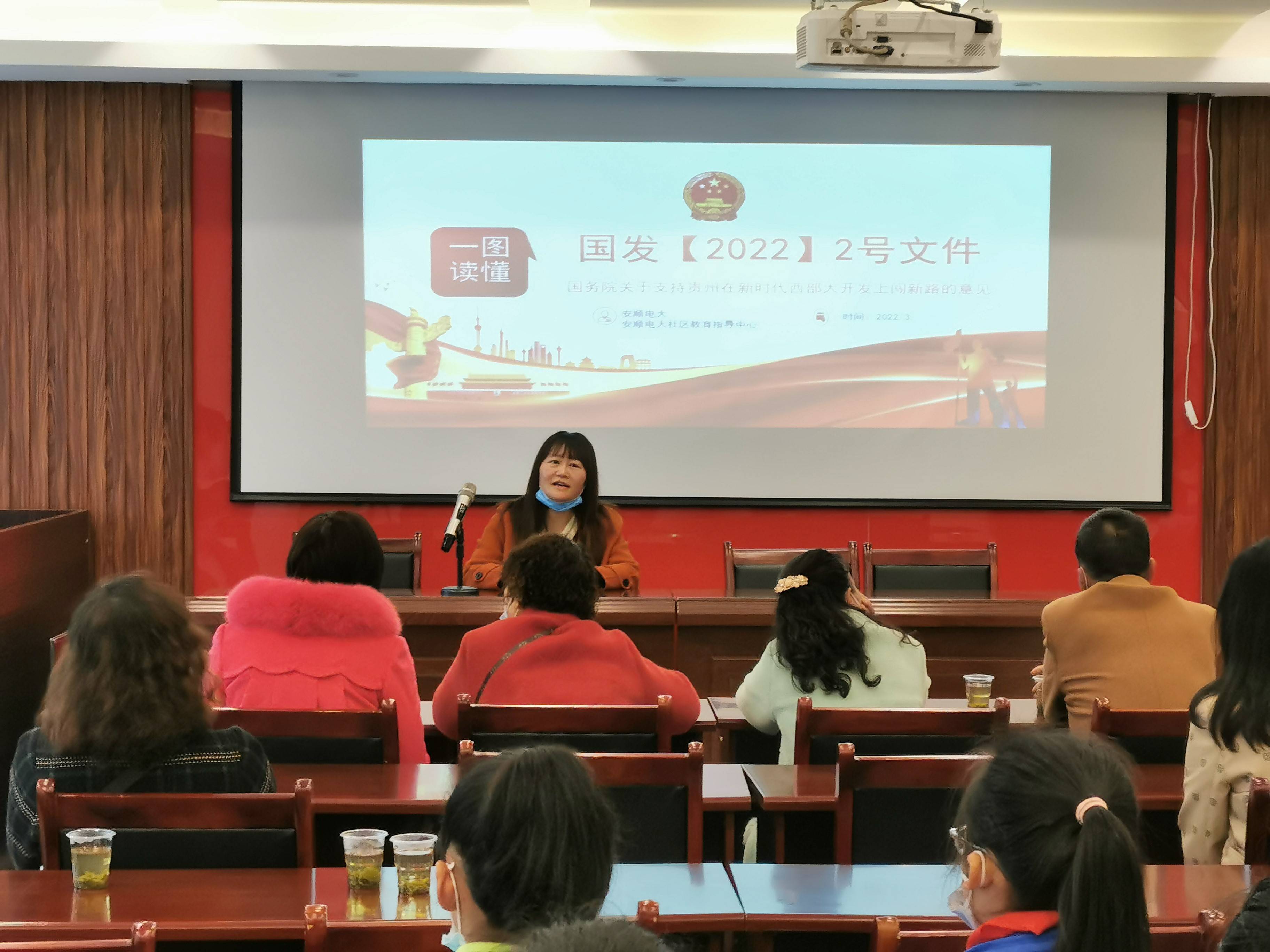 活动首先由安顺电大.安顺社区教育指导服务中心培训科科长伍婷宣传《国务院关于支持贵州在新时代西部大开发上闯新路的意见》(国发2号)文件精神。