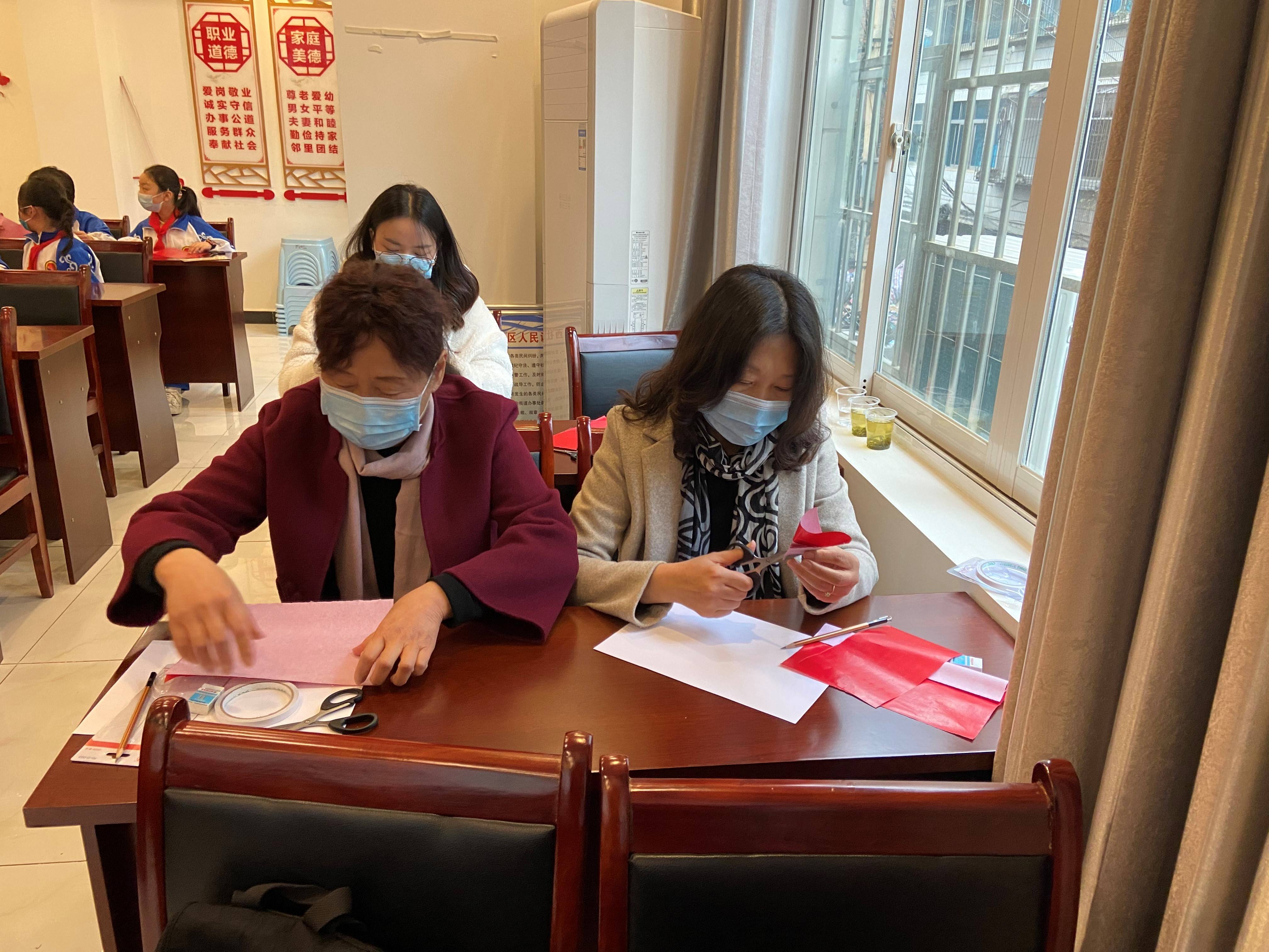 活动的第二阶段由安顺市城市职业学院高级讲师雷俊开展以“弘扬中华文化 “剪”出精彩”为主题的传统剪纸艺术特色培训。雷俊老师讲解了剪纸文化的由来、内涵和精髓,现场手把手教大家剪纸中如何折叠、如何画图、如何剪裁,通过寓教于乐、饶有新意、别开生面的教学,社区干部、居民和小学生们现场学习,自己动手剪出了花样新颖的五角星、小红花、小老虎及各种栩栩如生的各种动物和各种花式剪纸作品,激发了对剪纸文化学习的兴趣,乐在其中,流连忘返。