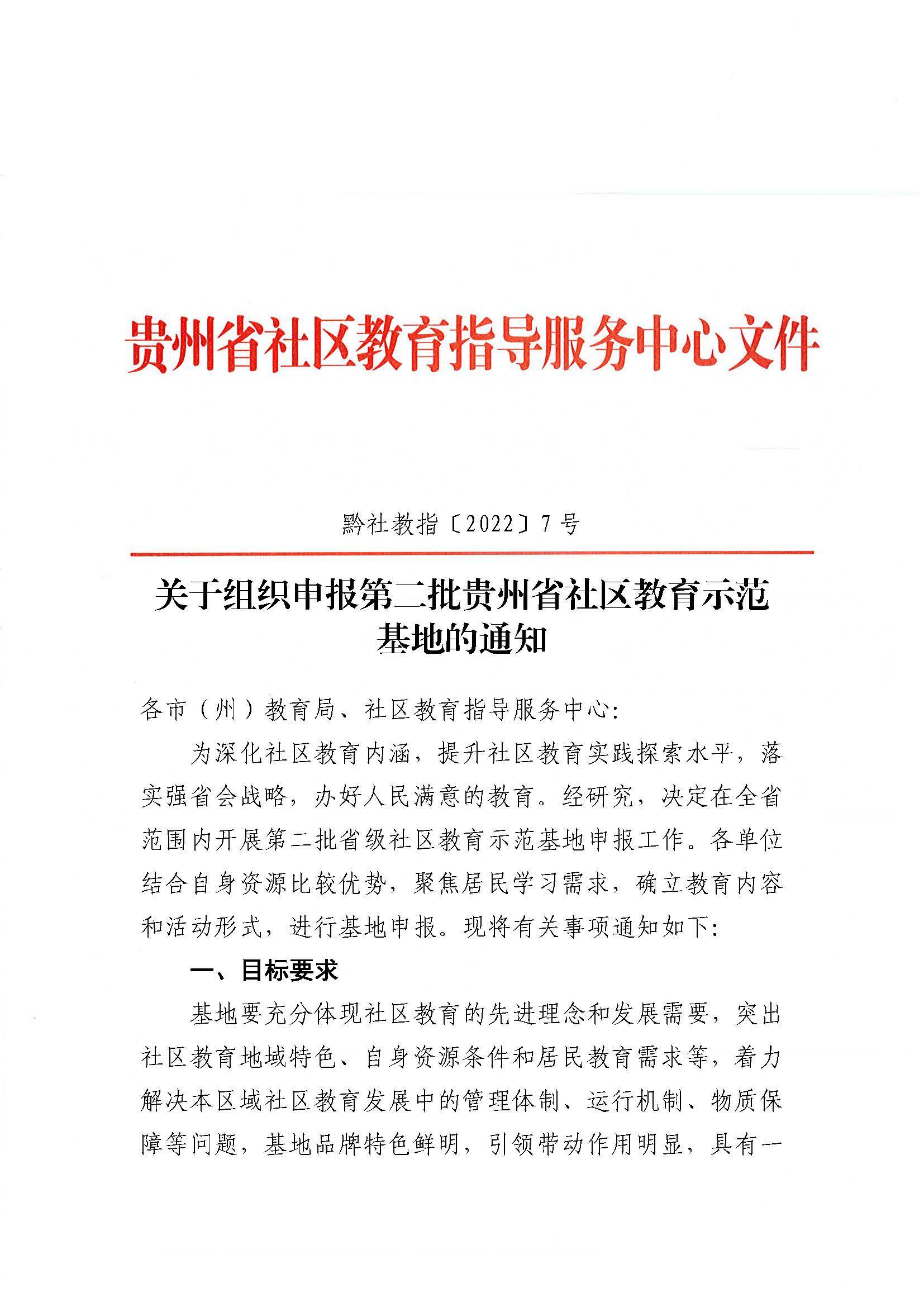 关于组织申报第二批贵州省社区教育示范基地的通知