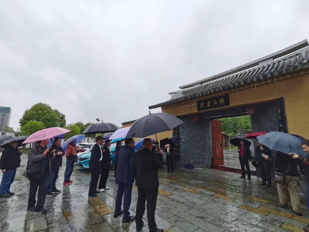 在安顺市平坝区陈法书院,大家认真聆听了平坝区政协及陈氏家族代表对明清时期贵州大儒陈法先生事迹和陈氏家族辉煌历史的介绍,详细了解陈氏家族对儒学文化的传播和贵州教育事业特别是贵山书院建设、发展的重大贡献,与平坝区文艺学会探讨诗词文化,双方互赠《贵阳诗词》《珍珠泉》等刊物,在雨中合影留念。