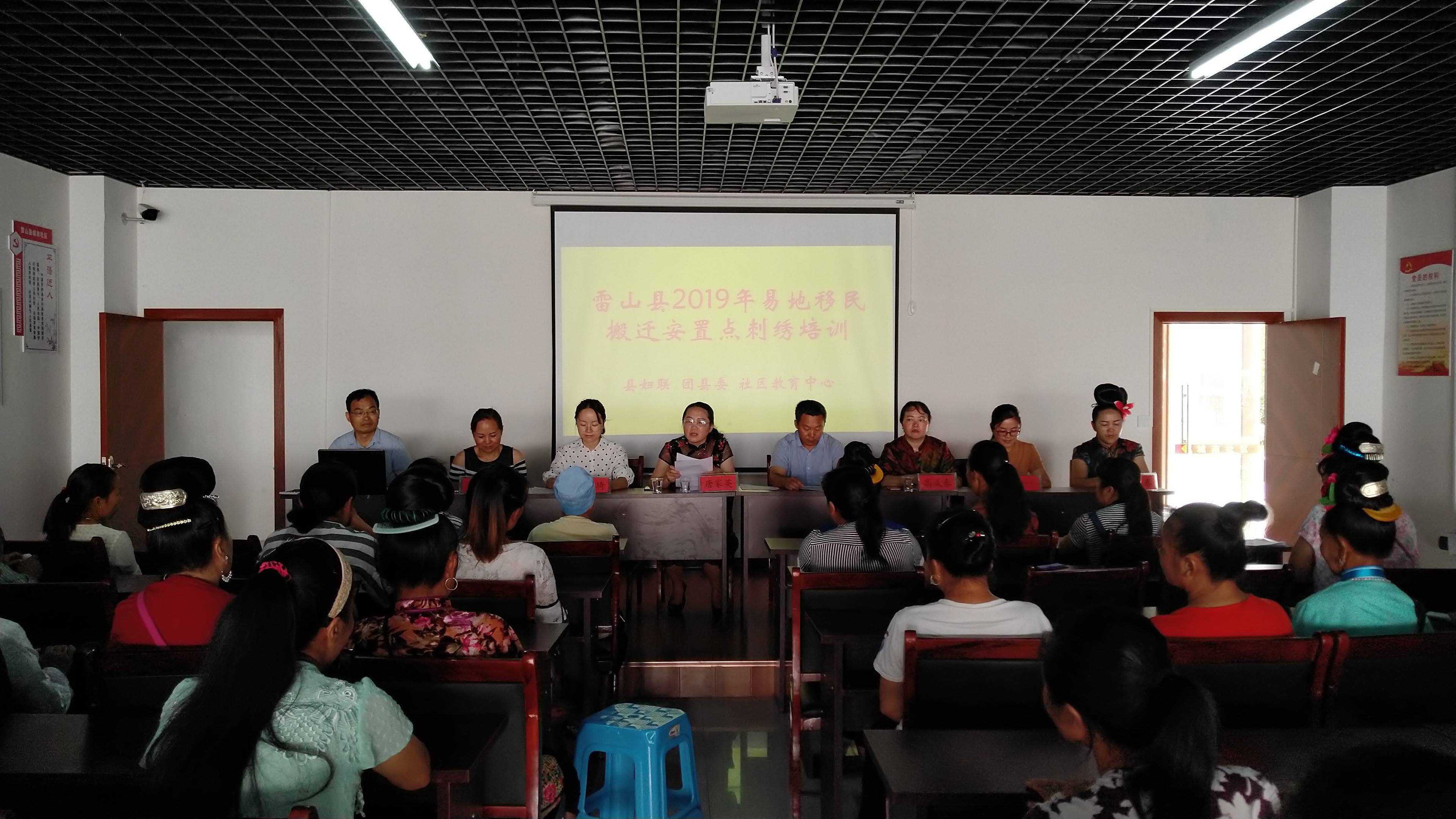 7月30日,雷山县在城南社区举办2019年易地移民搬迁安置点刺绣培训开班仪式,县妇联主席唐家英主持开班仪式,东城社区、团县委、县社区教育中心领导出席活动,来自城南社区和观音阁社区的41名移民搬迁妇女参加培训。