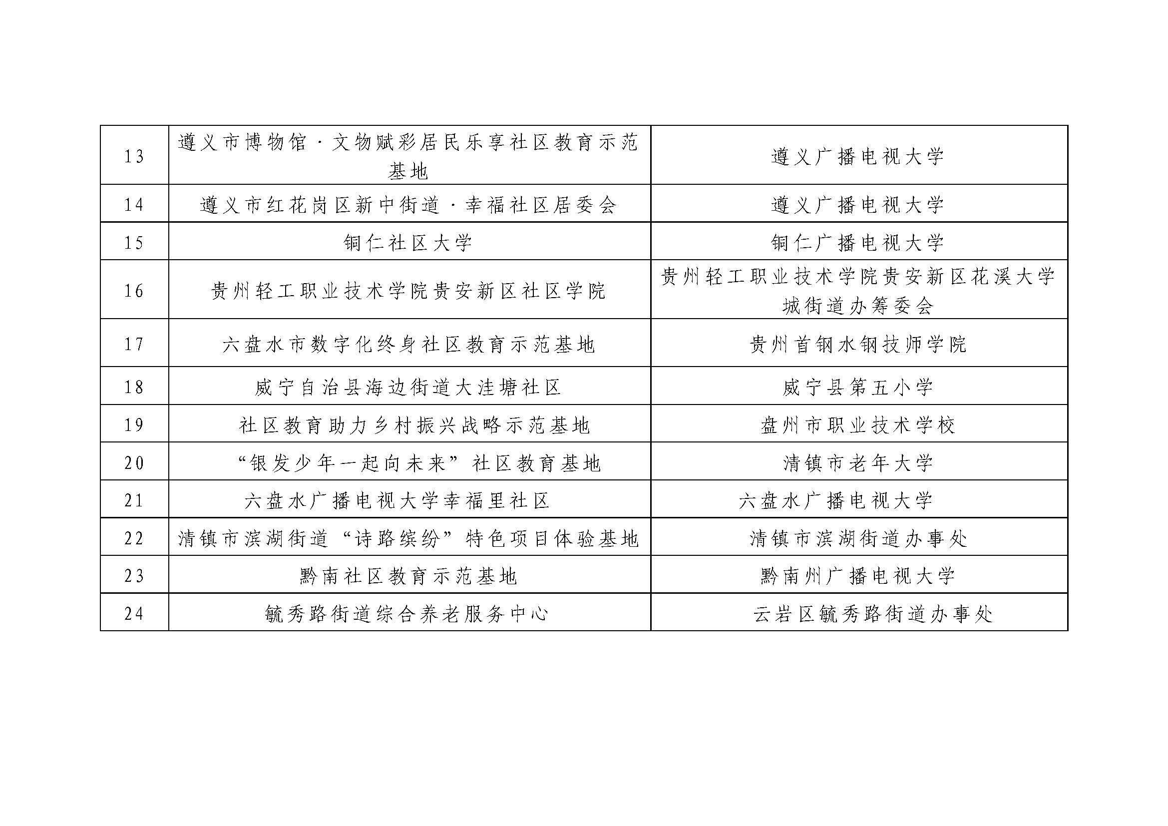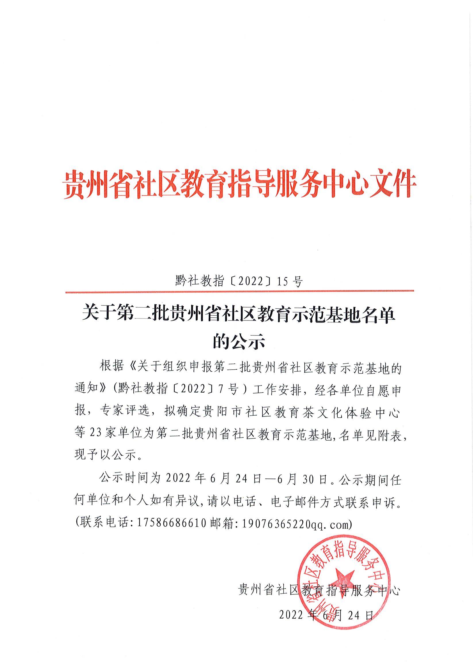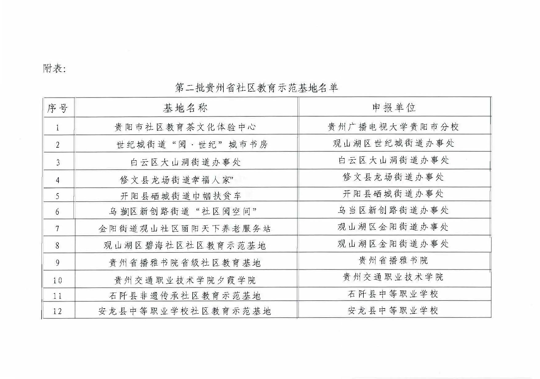 关于第二批贵州省社区教育示范基地名单的公示