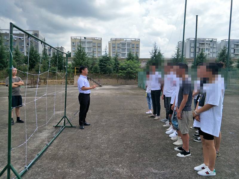 训练活动由瓮安职校成教处罗安福老师主持,瓮安职校拓展活动中心兰兴杰老师具体指导训练。根据未成年社区服刑人员的年龄及特殊身份,兰兴杰老师设计了“走钢丝”“雷区取水”“穿越电网”“信任背摔”四个活动科目。活动中,兰老师详细介绍了每个科目的活动规程、纪律要求。虽然天气酷热,大家都积极参与,顺利完成了所有训练科目。