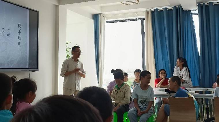 来自贵阳市第十二中学教师、马鞍村驻村干部王玉柱老师为小朋友们讲了生动有趣的阅读课程。他说“场边村社区教育点的设施很棒,村里有这样的教学设施给小朋友们提供了很好的课外学习环境。每次活动准备工作很到位,大学生志愿者资源利用有效,在教学活动中配合默契。家长热心,孩子积极。通过带小朋友学习既教了孩子,也成长了老师。