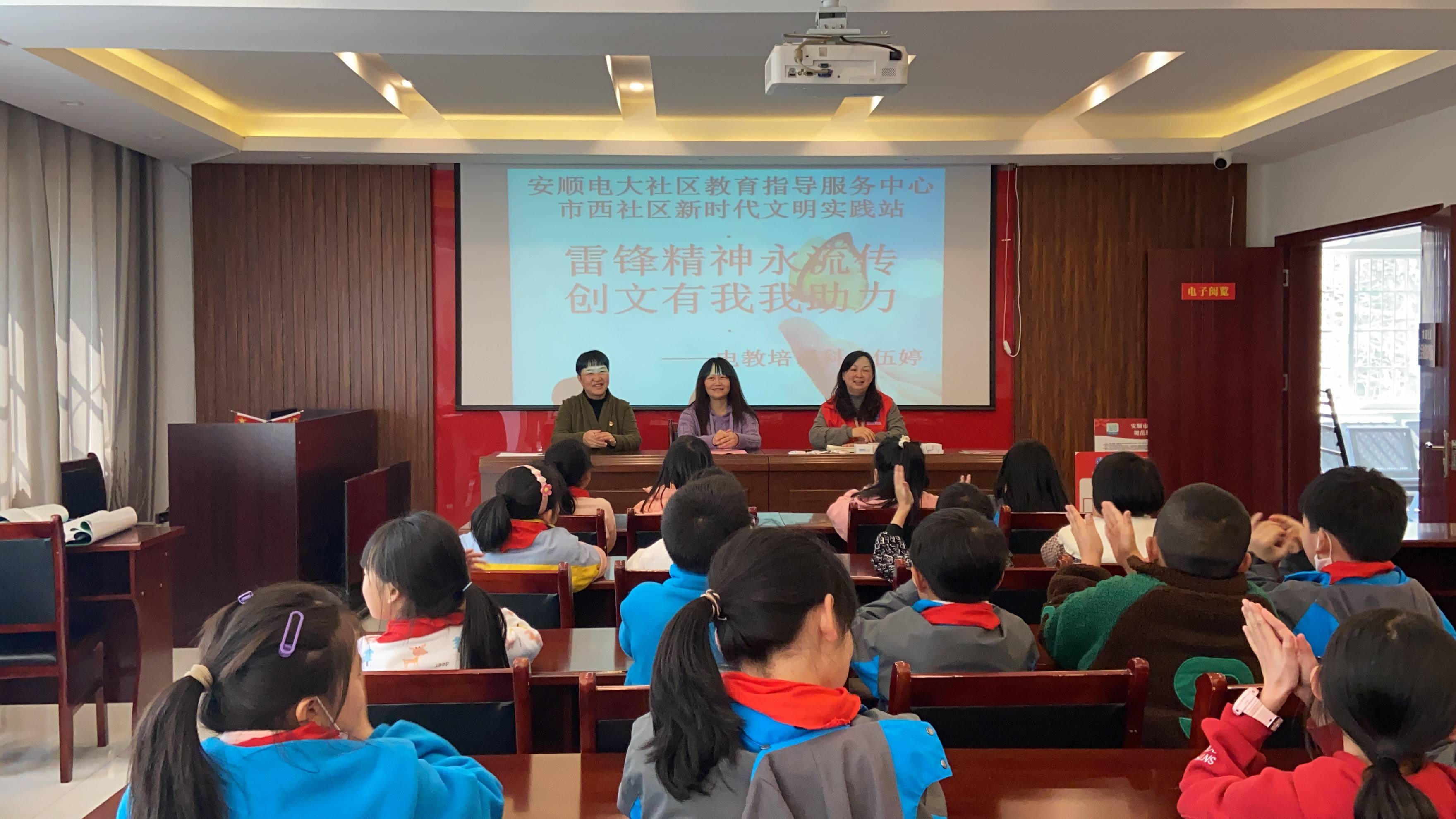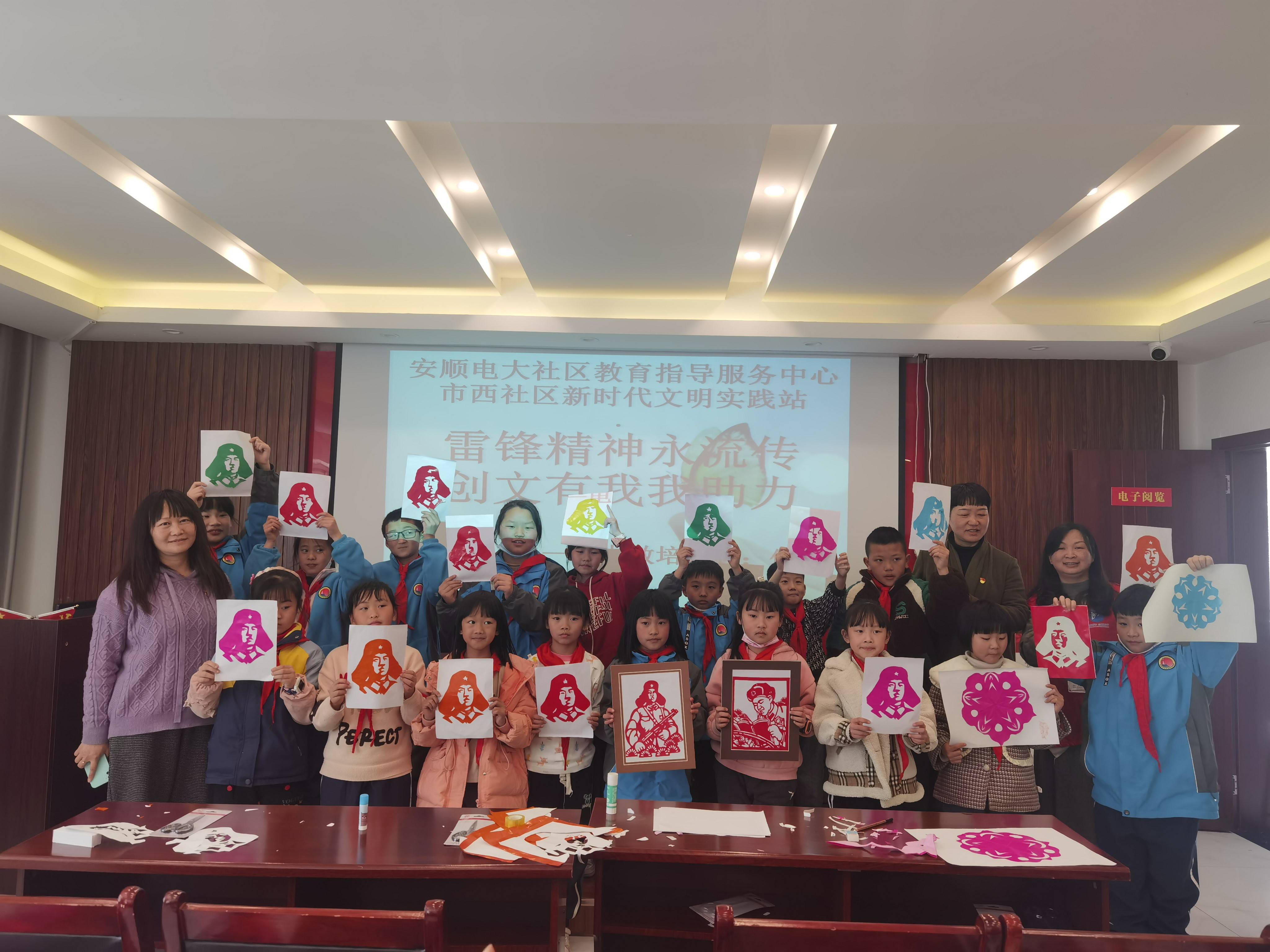 3月14日下午,安顺电大(安顺电大社区教育指导服务中心)在西秀区西街街道办事处市西社区文明实践站组织未成年人开展“雷锋精神永流传,创文有我我助力暨传承传统文化学剪纸”主题活动。