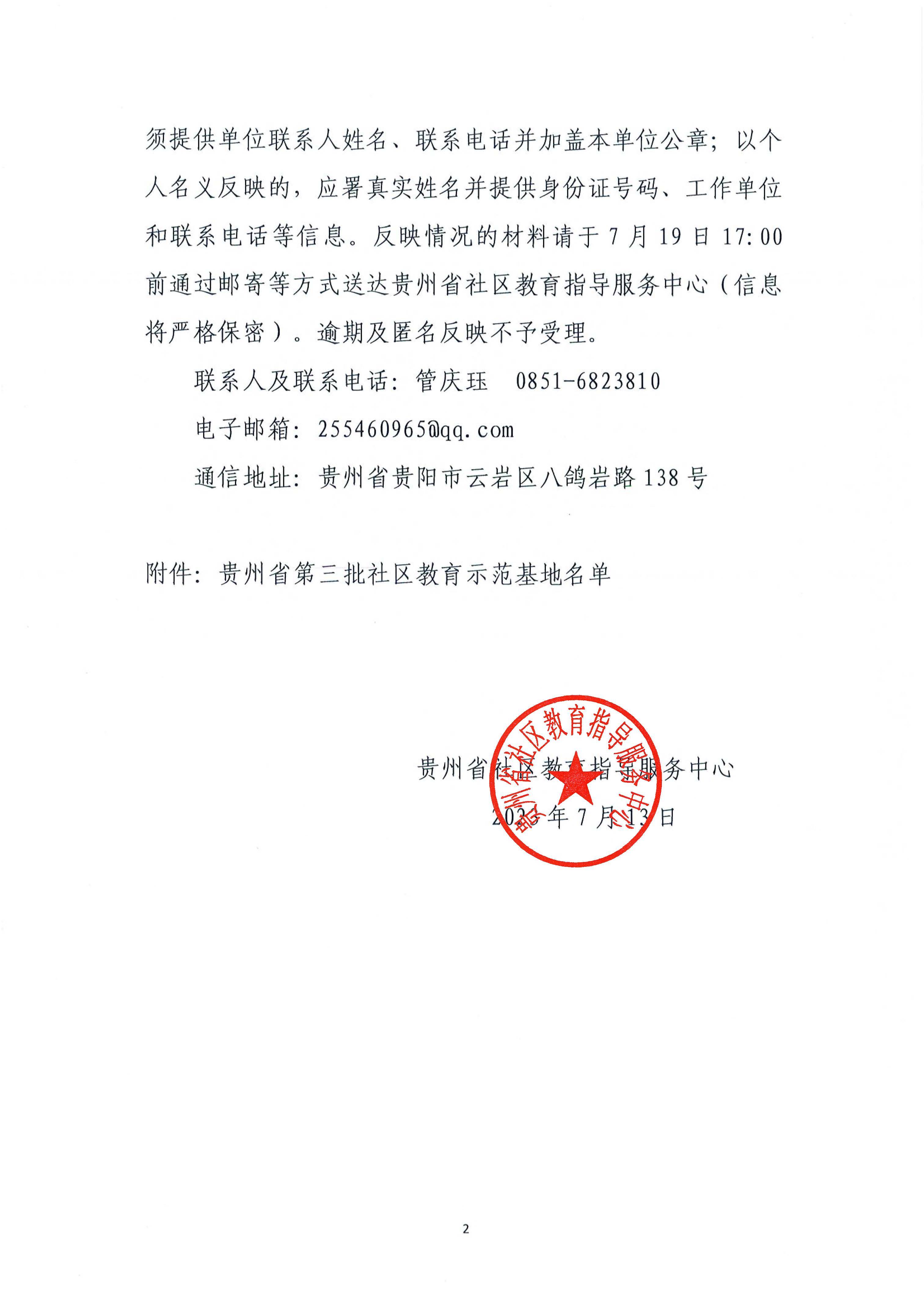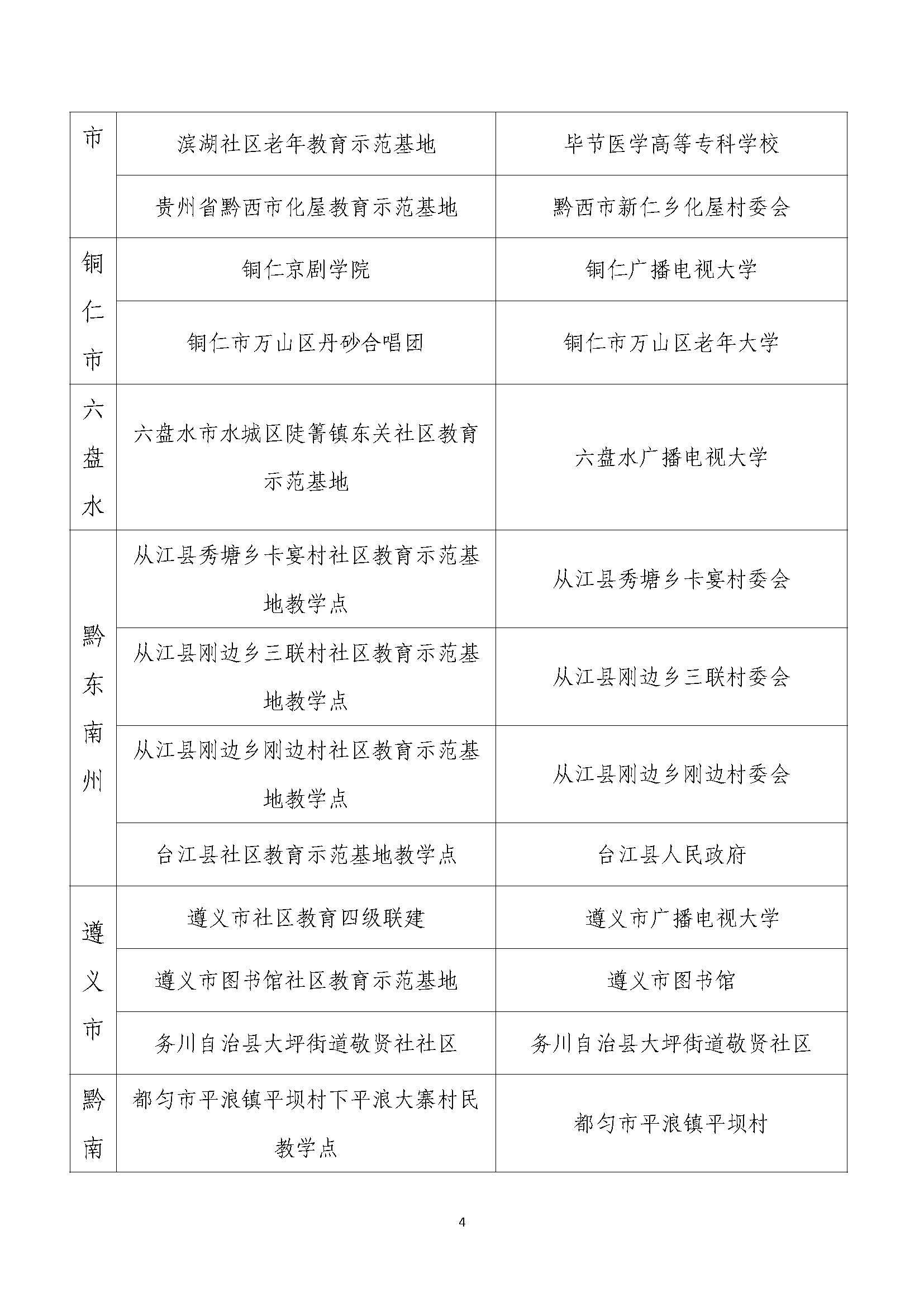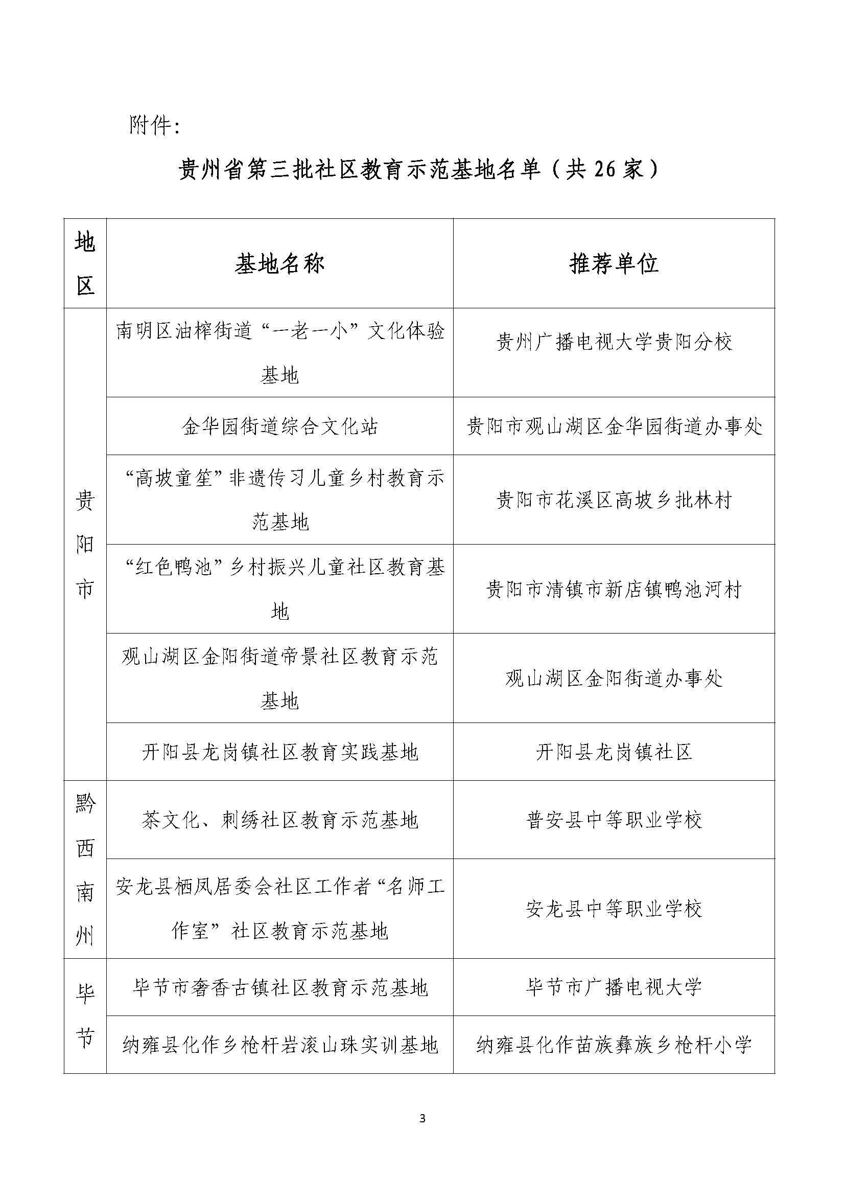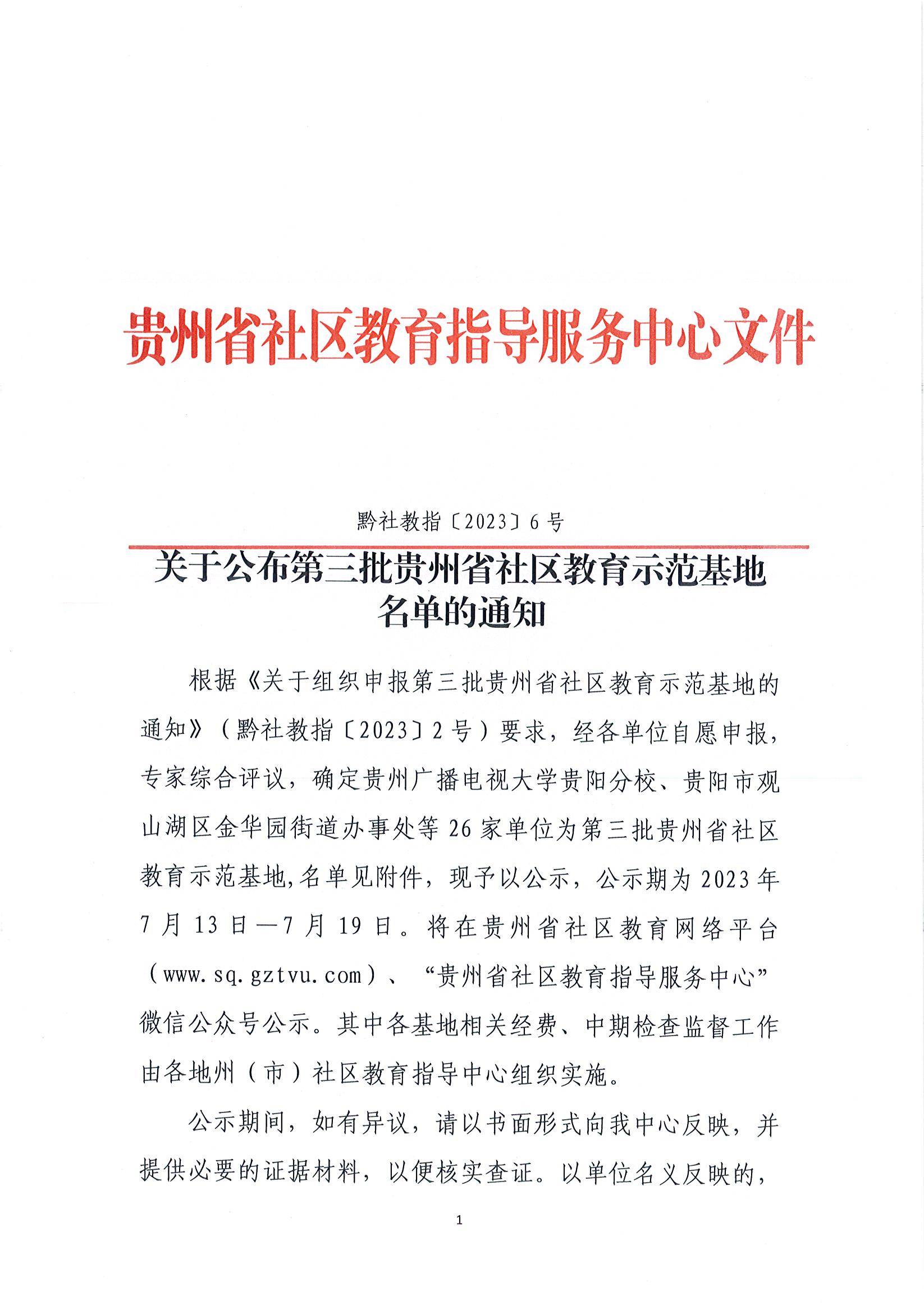 贵州省社区教育示范基地公示名单
