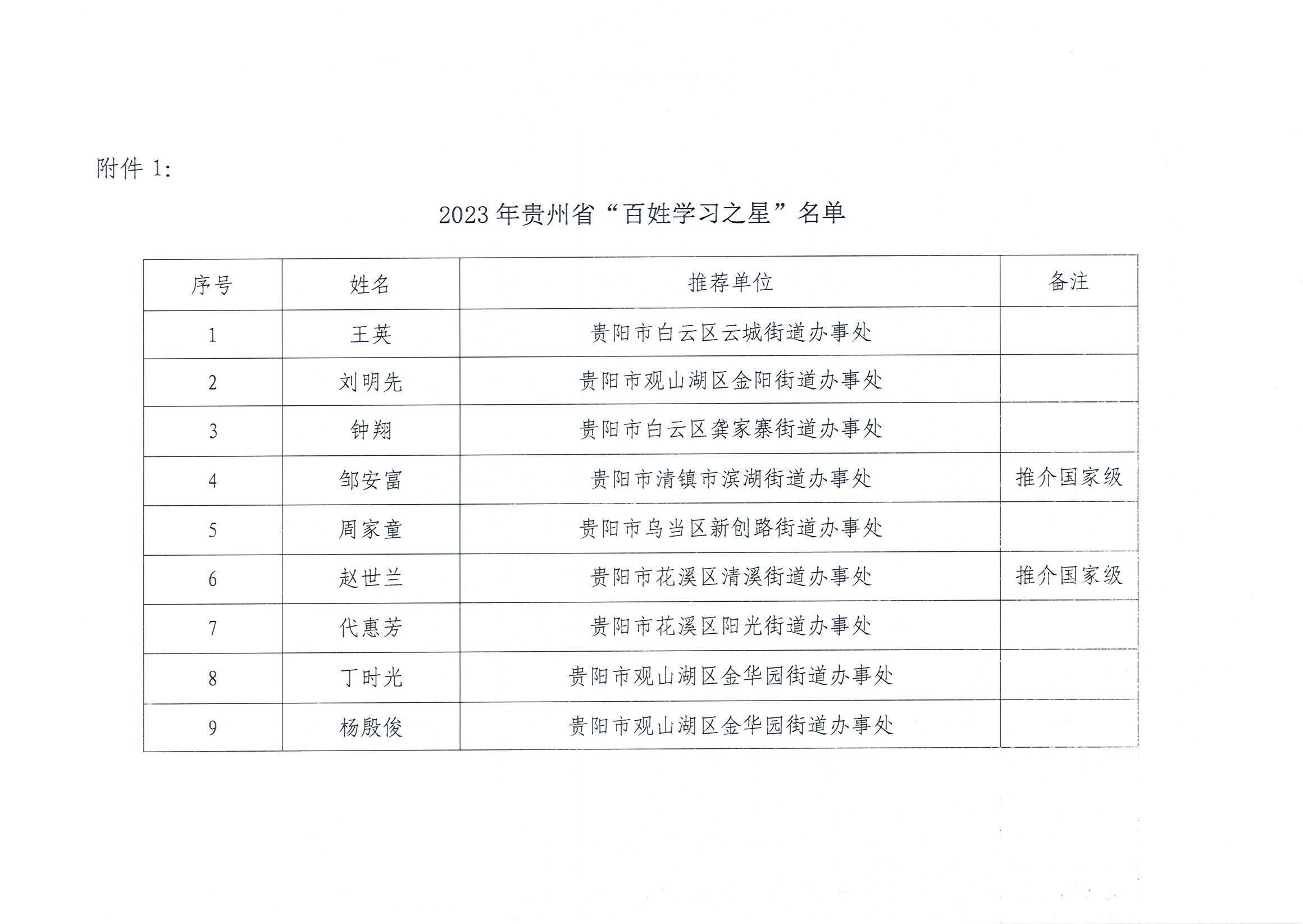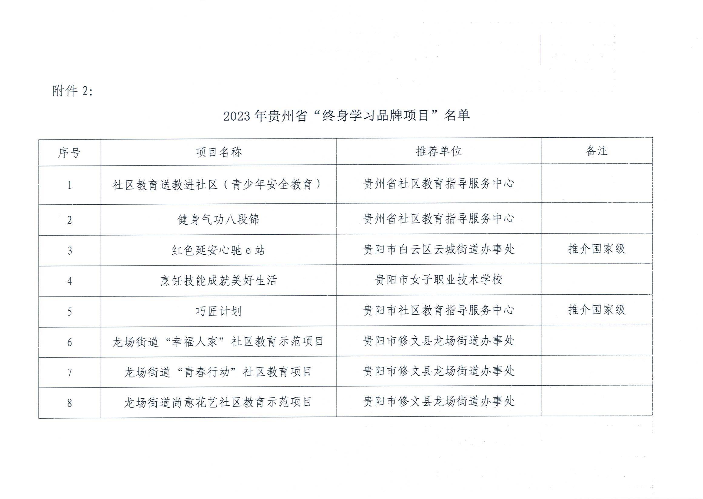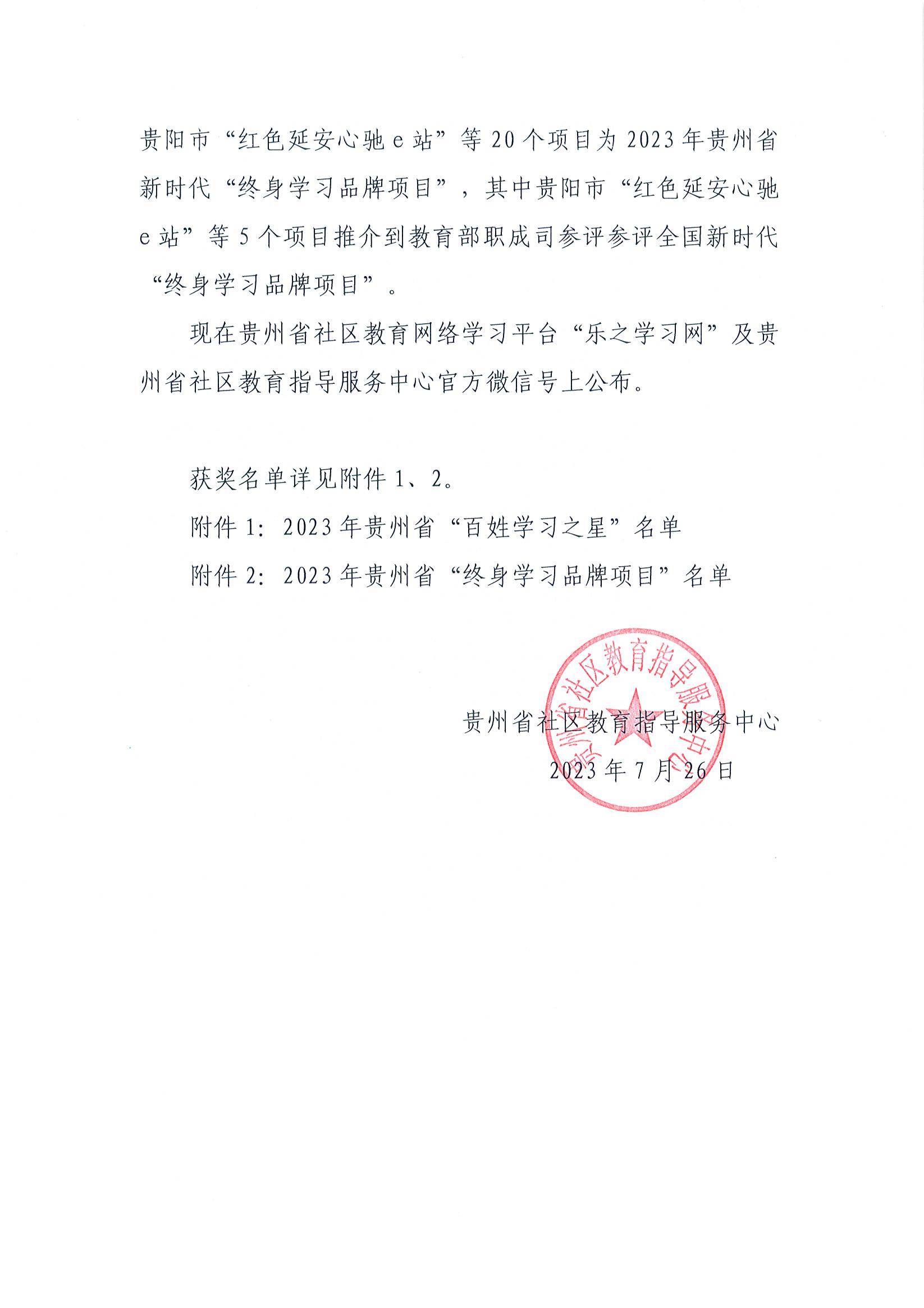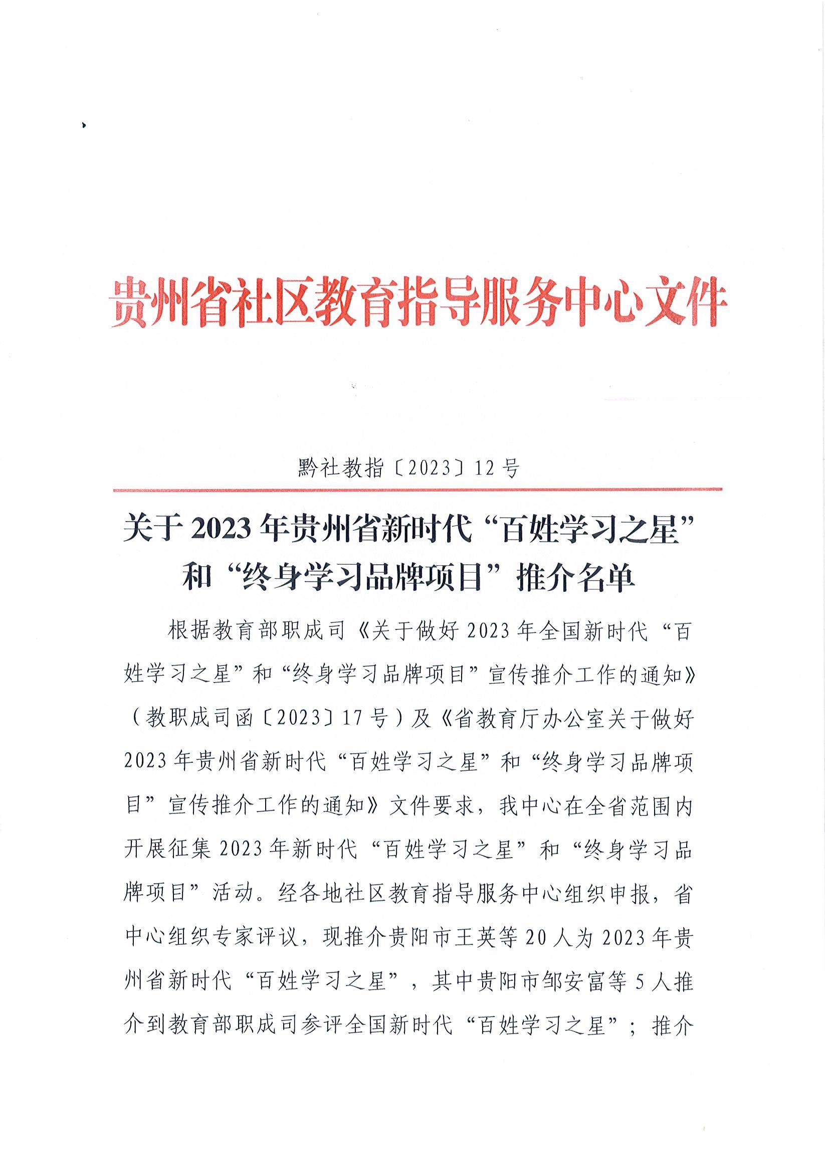 2023年贵州省新时代“百姓学习之星”和“终身学习品牌项目”推介名单