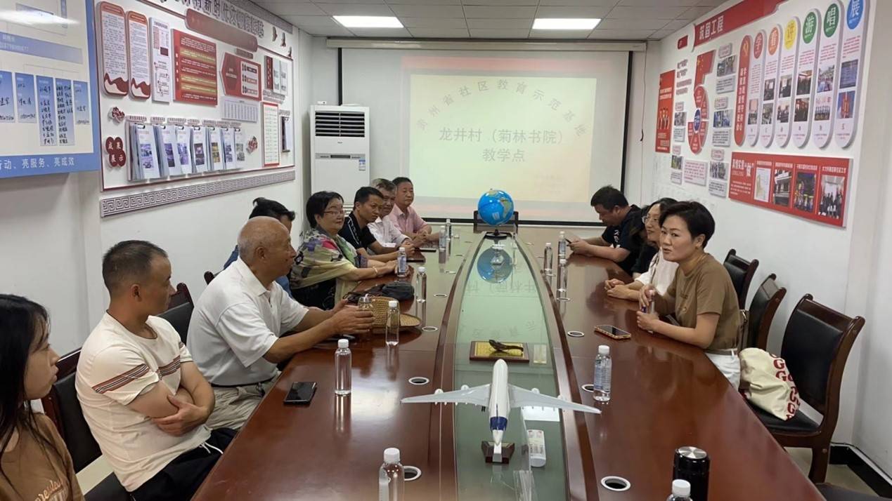 为推进社区教育与乡村振兴优势互补,积极探索乡村居民所需的文化素养、生活技能、职业技能、心理健康等教育服务,9月11日上午,由贵州开放大学与青岩龙井村、菊林书院合作共建的贵州省社区教育示范基地龙井村(菊林书院)教学点揭牌仪式暨继续教育党支部主题党日活动在龙井村党群服务中心举行。贵州省社区教育指导服务中心主任涂雪霏、龙井村党支部书记龙德国、菊林书院院长饶昌东及村民和书院老师们参与了揭牌仪式。此次活动标志着贵州开放大学与基层单位合作共建,打造高品质新农村的社区教育示范基地正式运行。