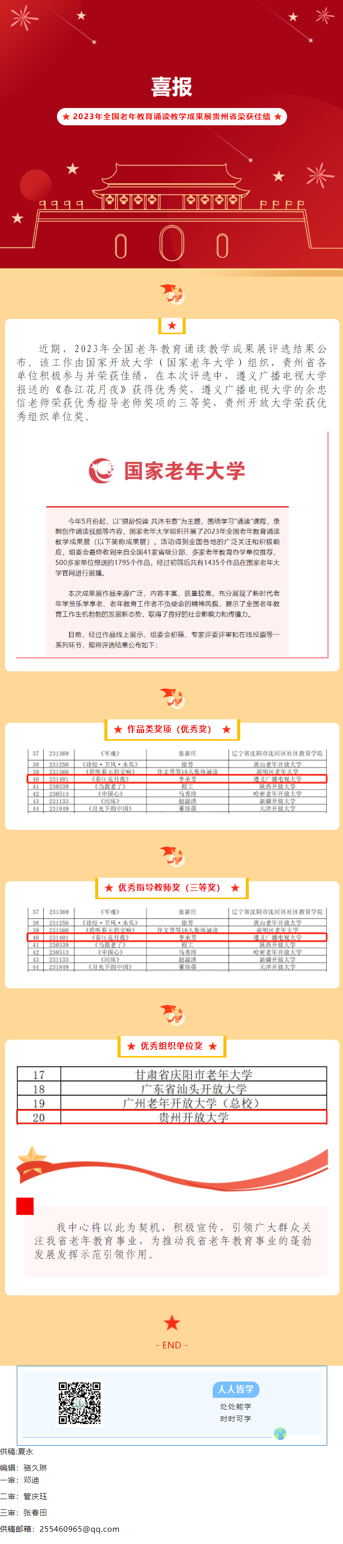 喜报·2023年全国老年教育诵读教学成果展贵州省荣获佳绩