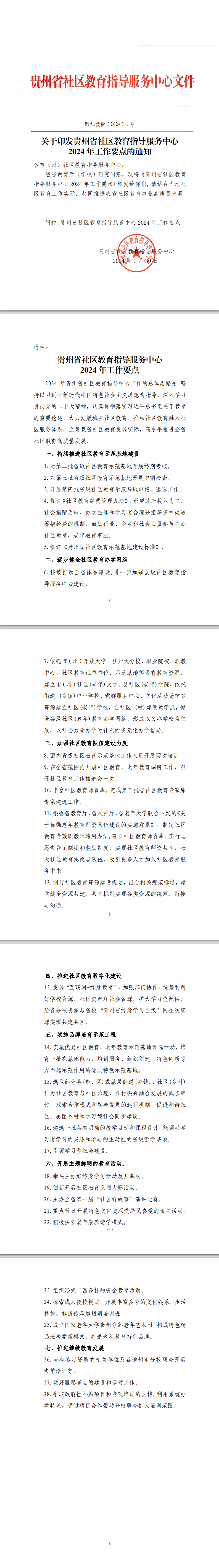 关于印发贵州省社区教育指导服务中心2024年工作要点的通知