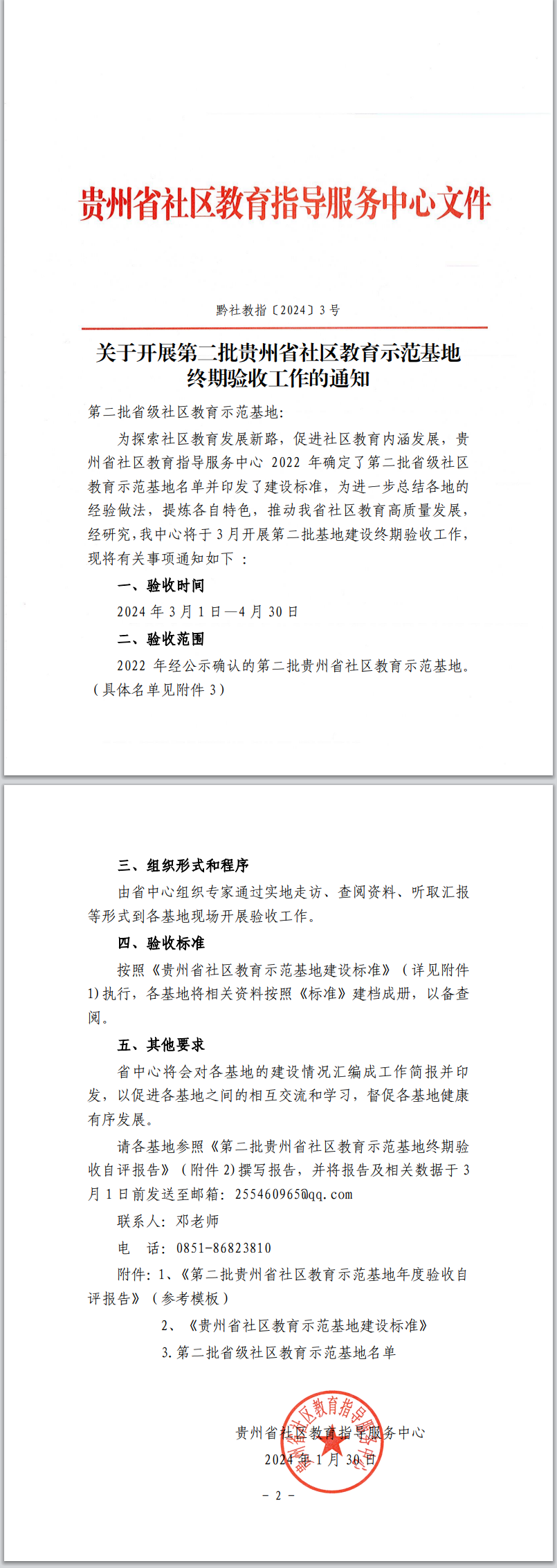关于开展第二批贵州省社区教育示范基地终期验收工作的通知