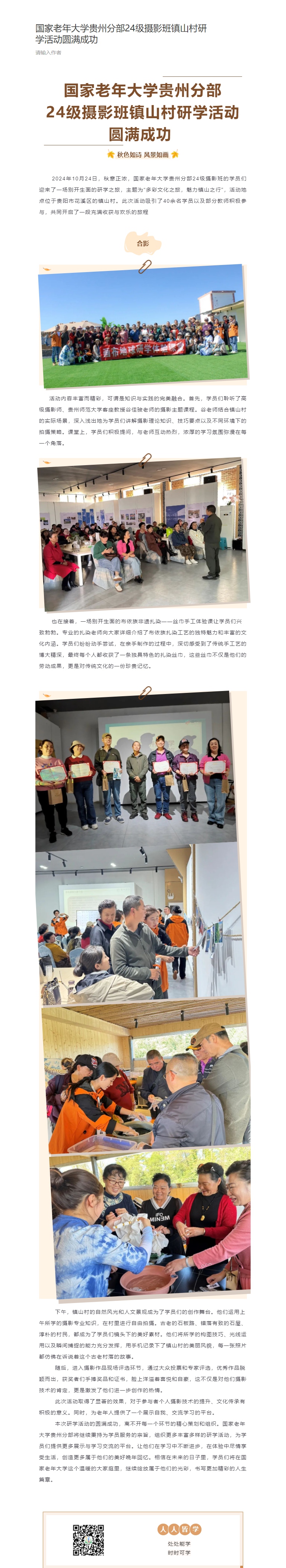 国家老年大学贵州分部24级摄影班镇山村研学活动圆满成功