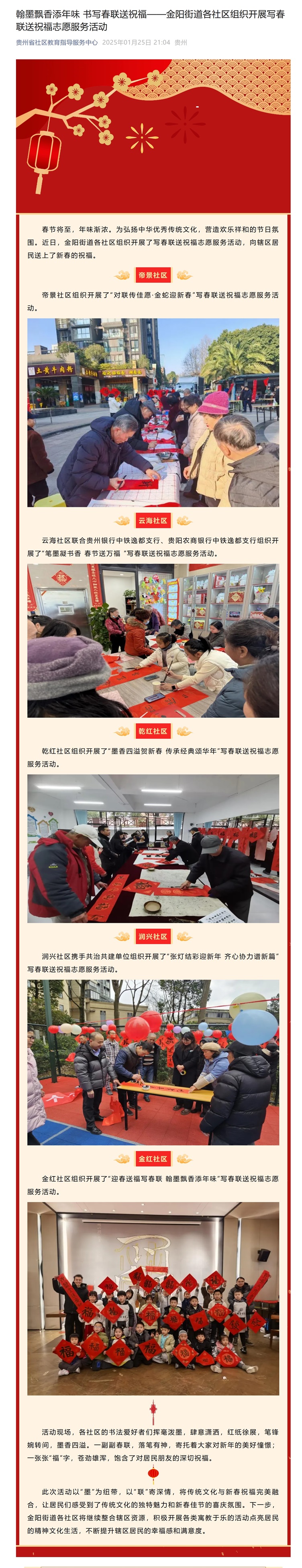 翰墨飘香添年味 书写春联送祝福——金阳街道各社区组织开展写春联送祝福志愿服务活动