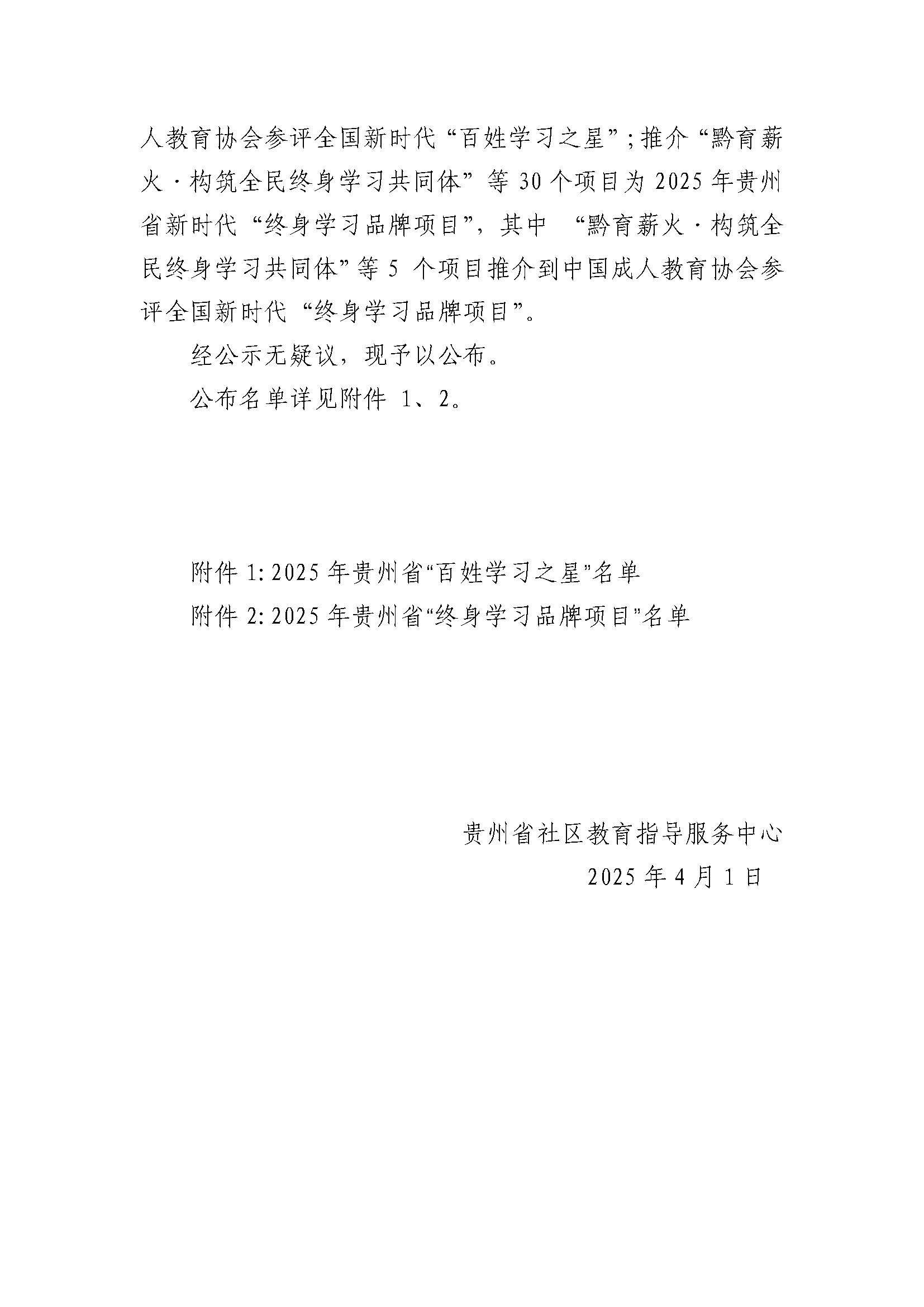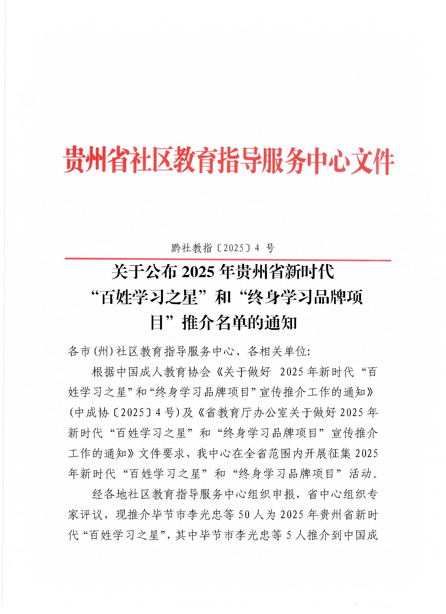 关于公布 2025年贵州省新时代“百姓学习之星”和“终身学习品牌项目”推介名单的通知2.pdf