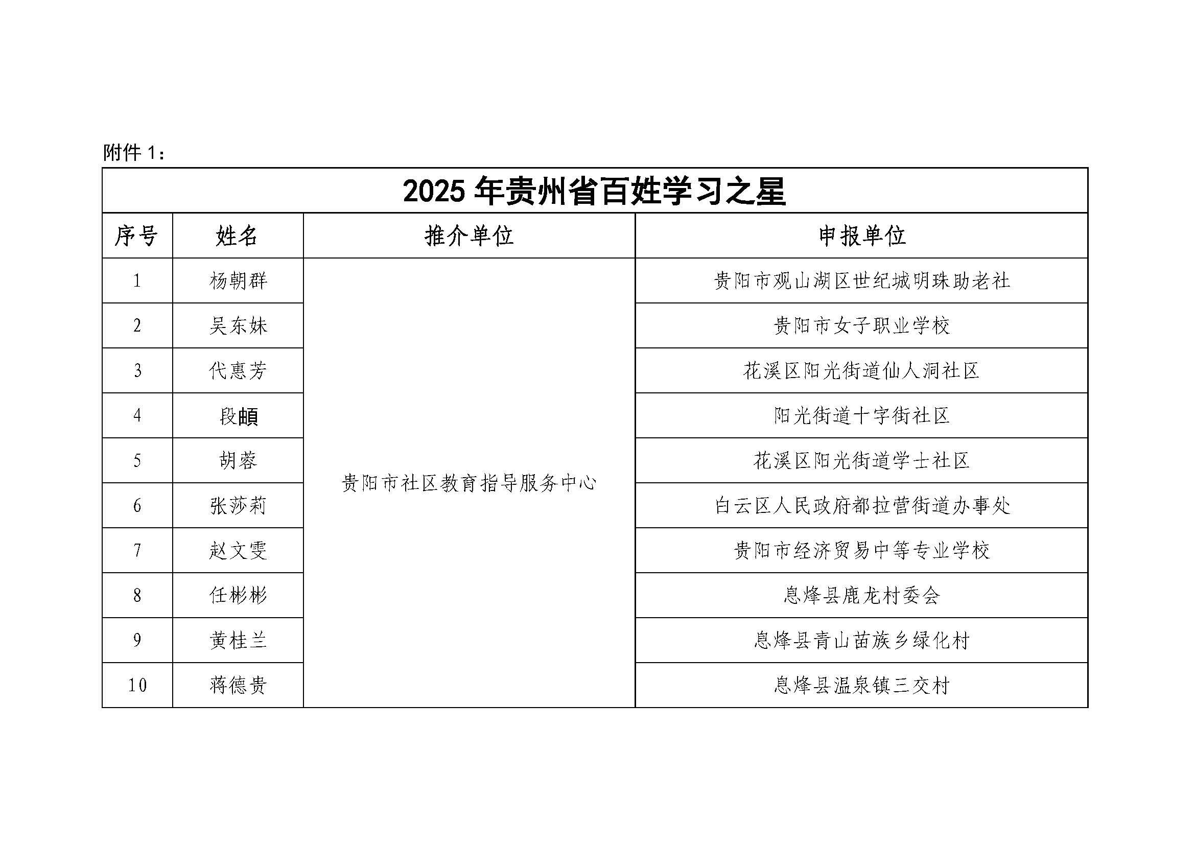 关于公布2025年贵州省新时代 “百姓学习之星”和“终身学习品牌项目”推介名单的通知