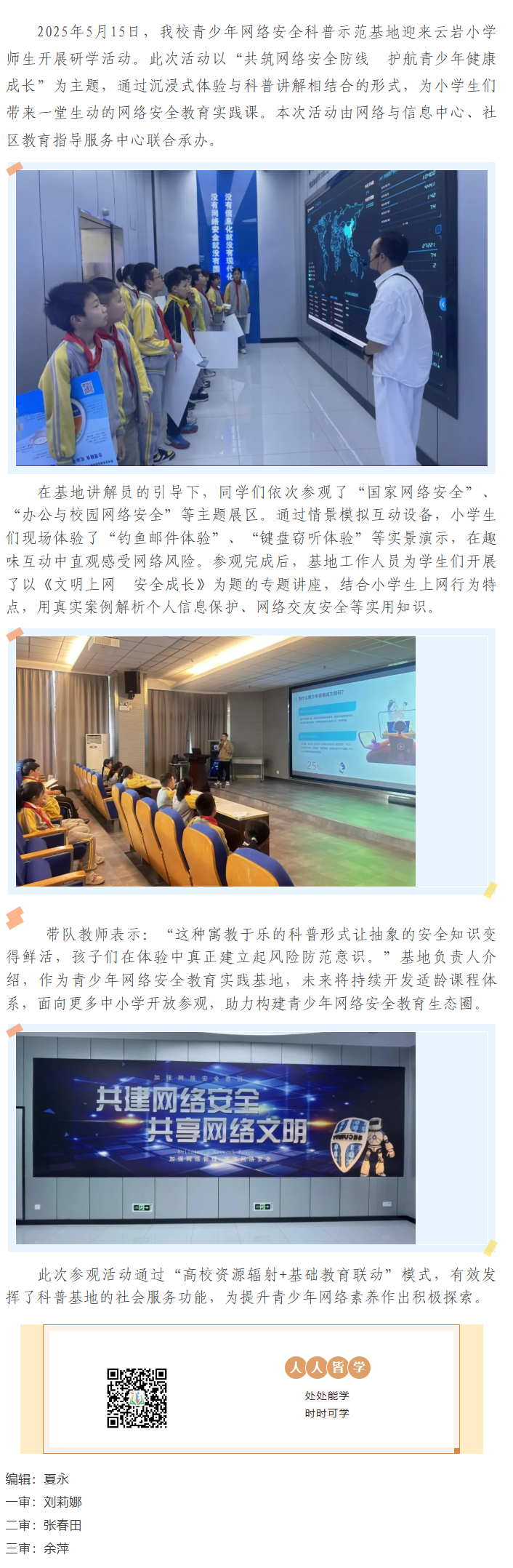 共筑网络安全防线 护航青少年健康成长——我校青少年网络安全科普示范基地迎来贵阳市云岩小学师生参观交流
