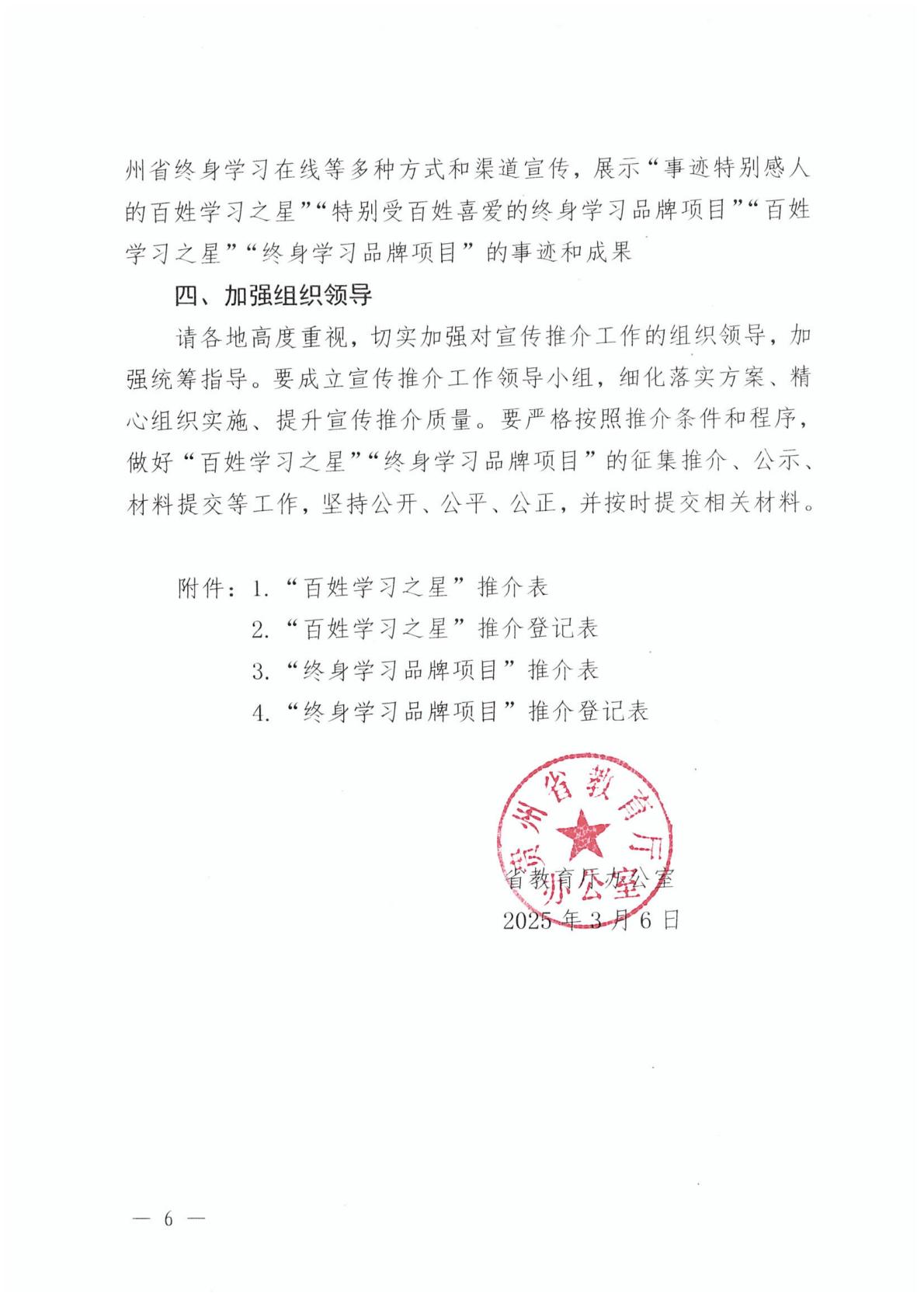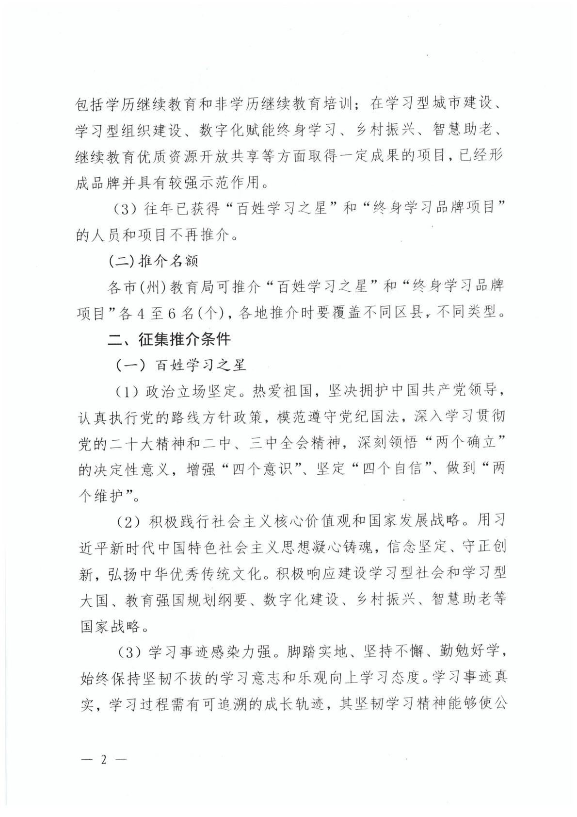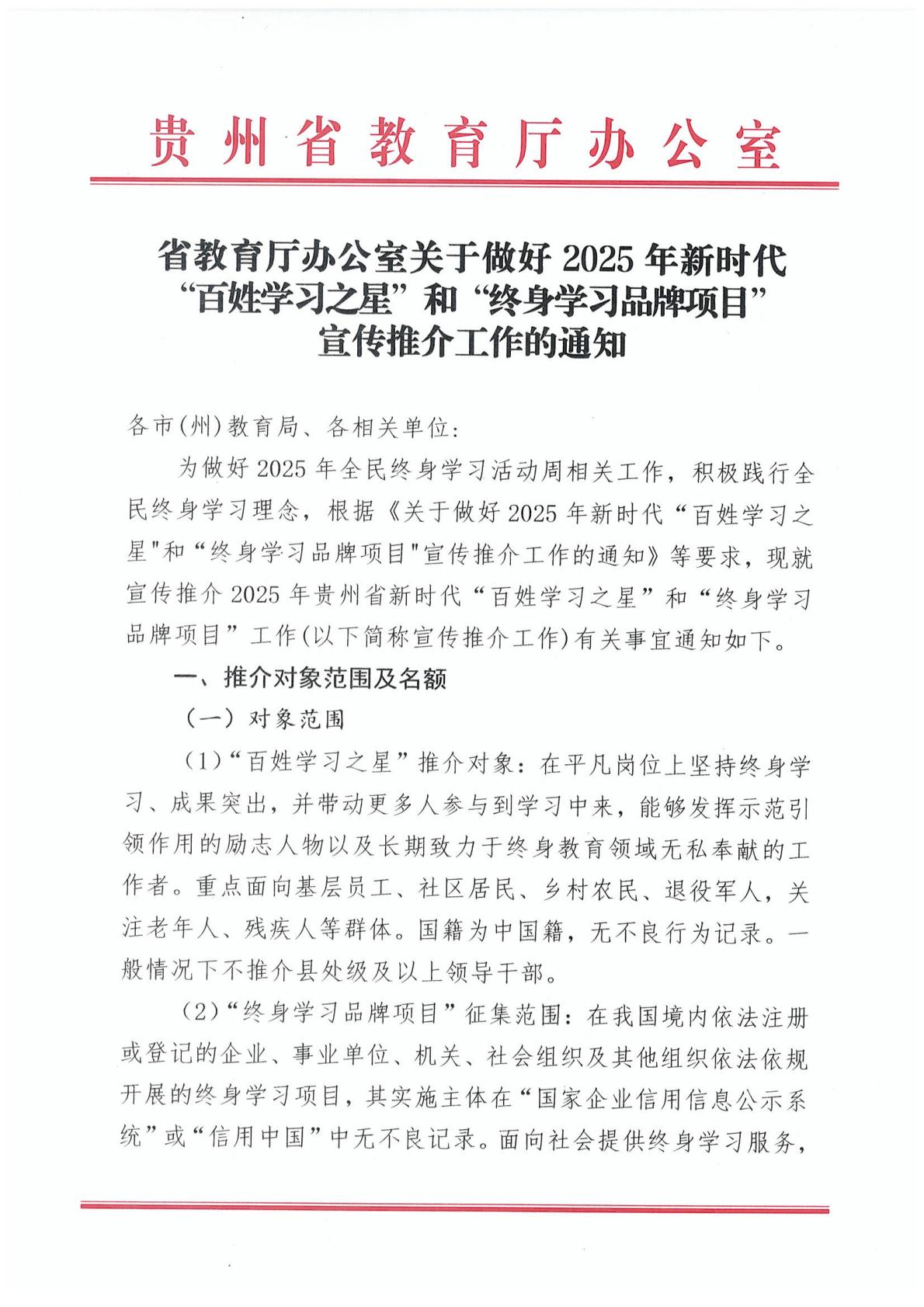 省教育厅办公室关于做好2025年新时代“百姓学习之星”和“终身学习品牌项目”宣传推介工作的通知