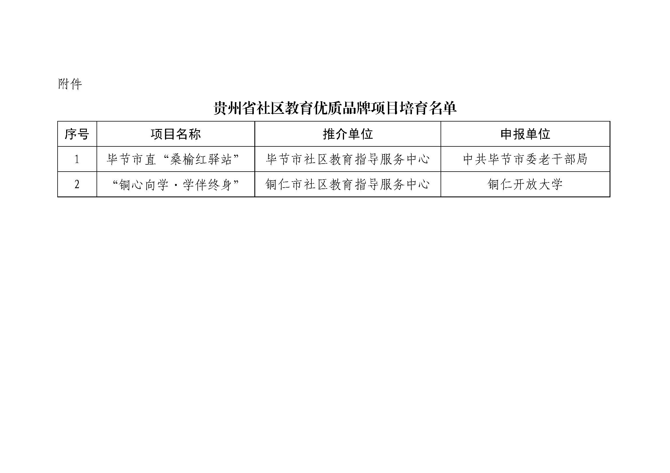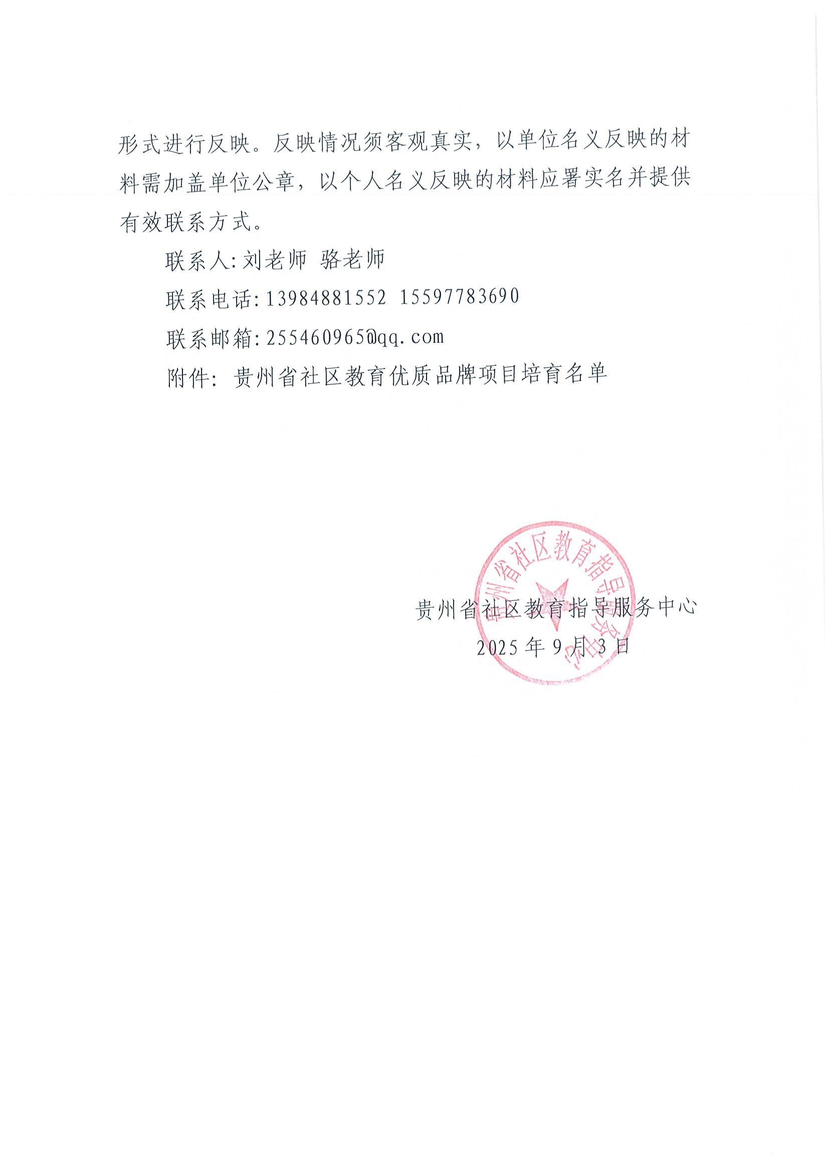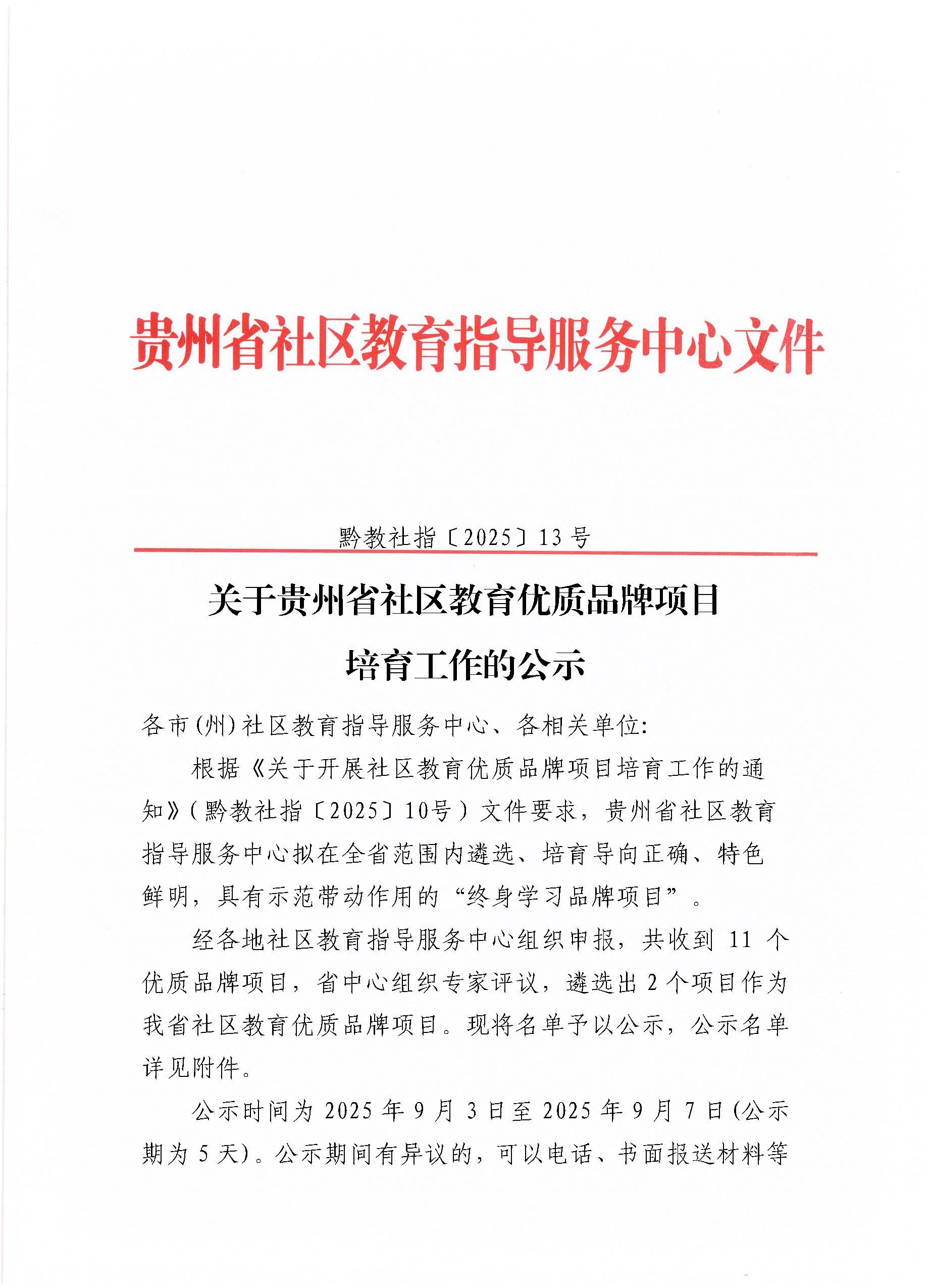 关于贵州省社区教育优质品牌项目培育工作的公示