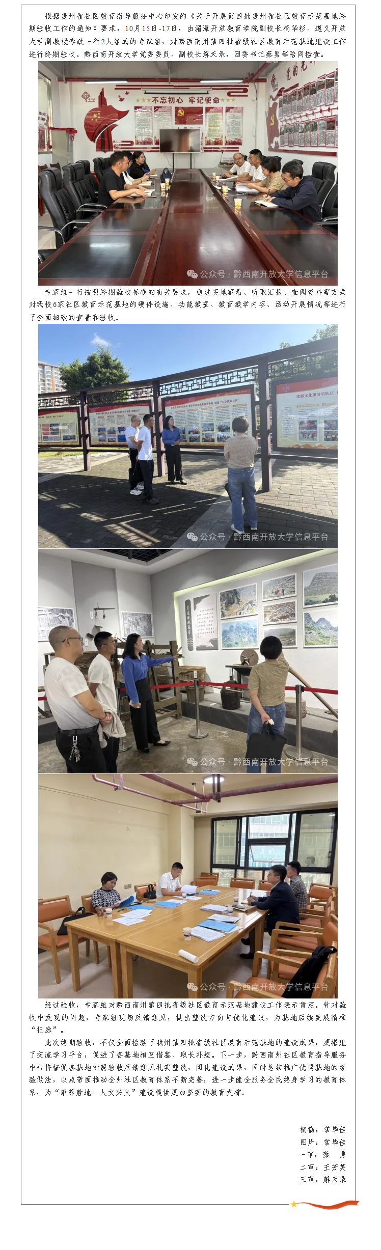 黔西南州第四批省级社区教育示范基地终期验收圆满完成